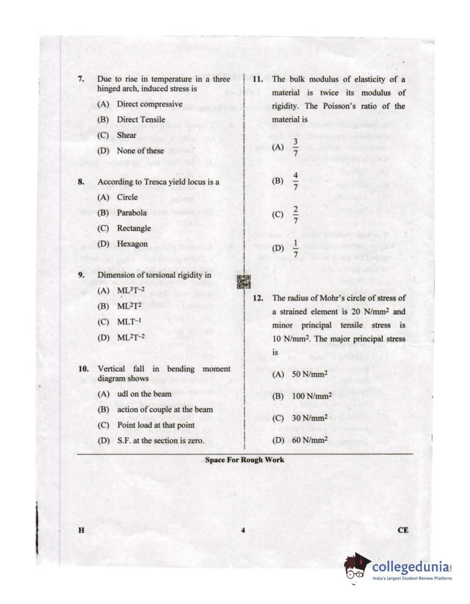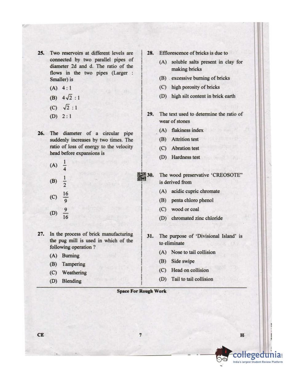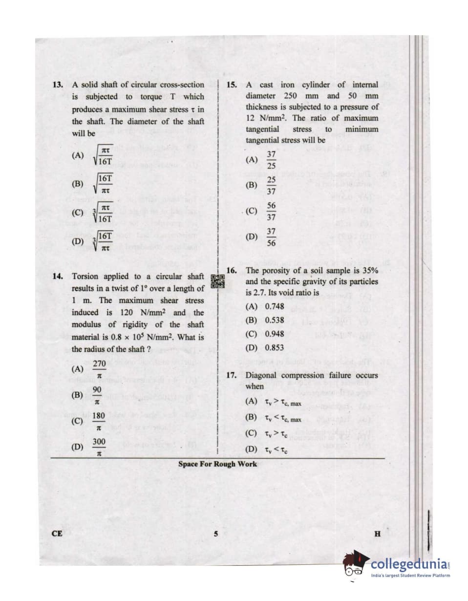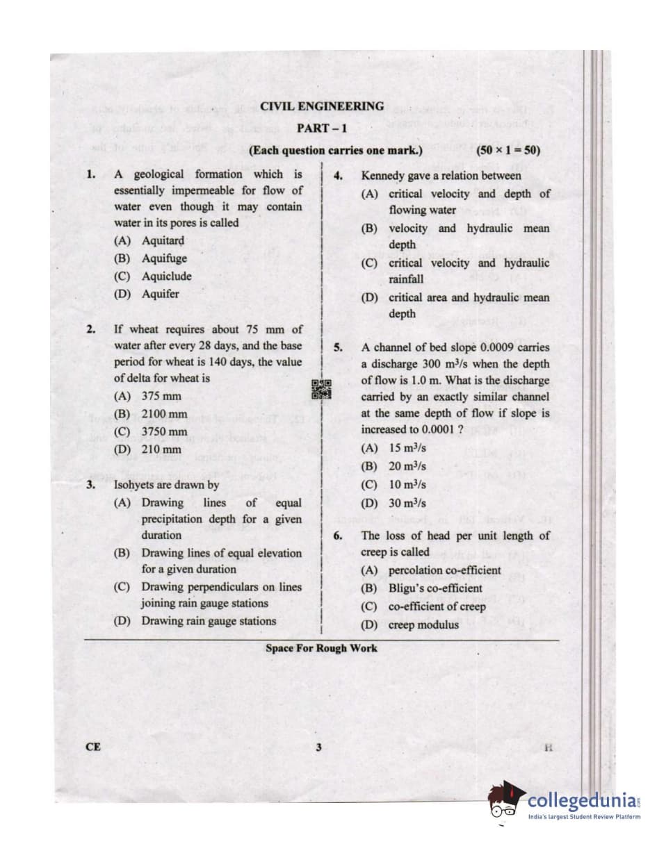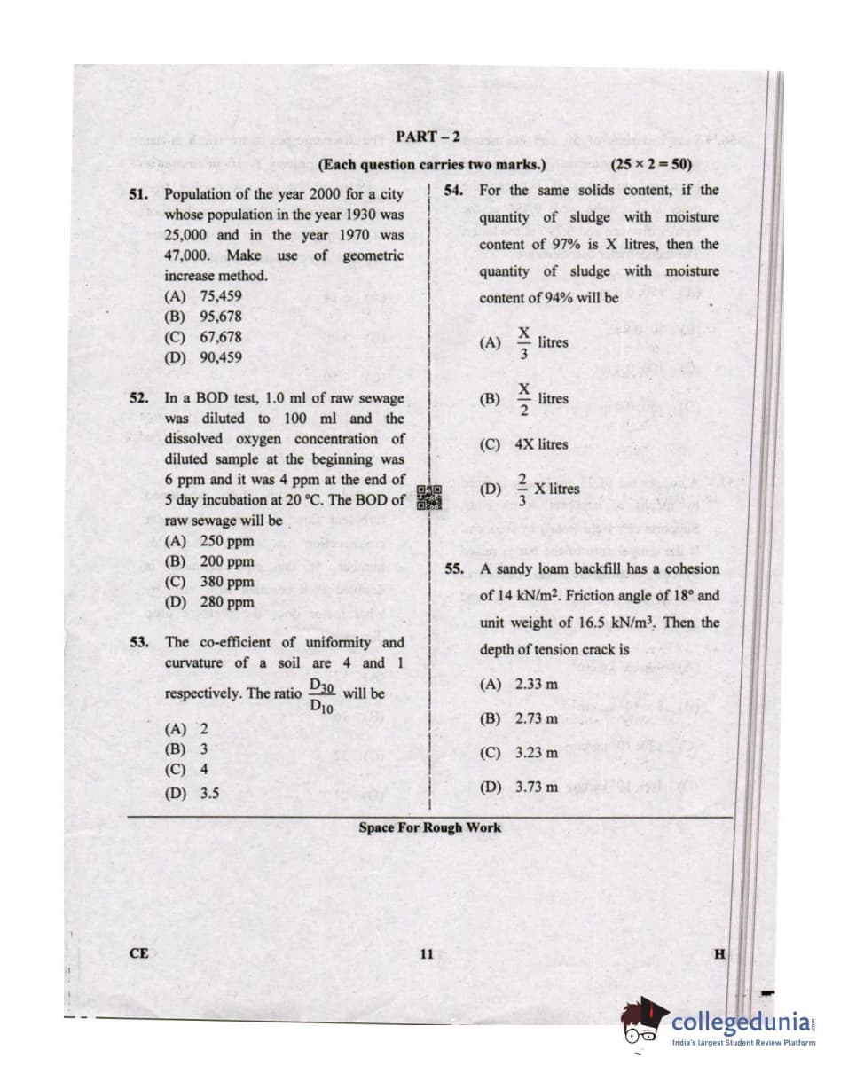 Karnataka PGCET 2019 Civil Engineering Question Paper with Answer Key PDF for Afternoon Session
