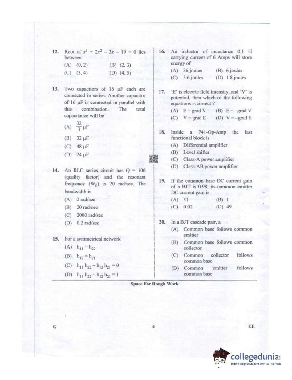 Karnataka PGCET 2019 Electrical Sciences Question Paper with Answer Key PDF for Afternoon Session