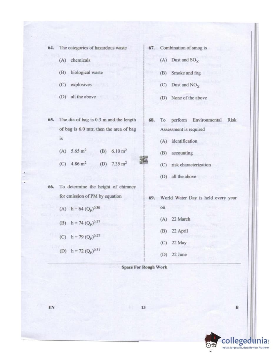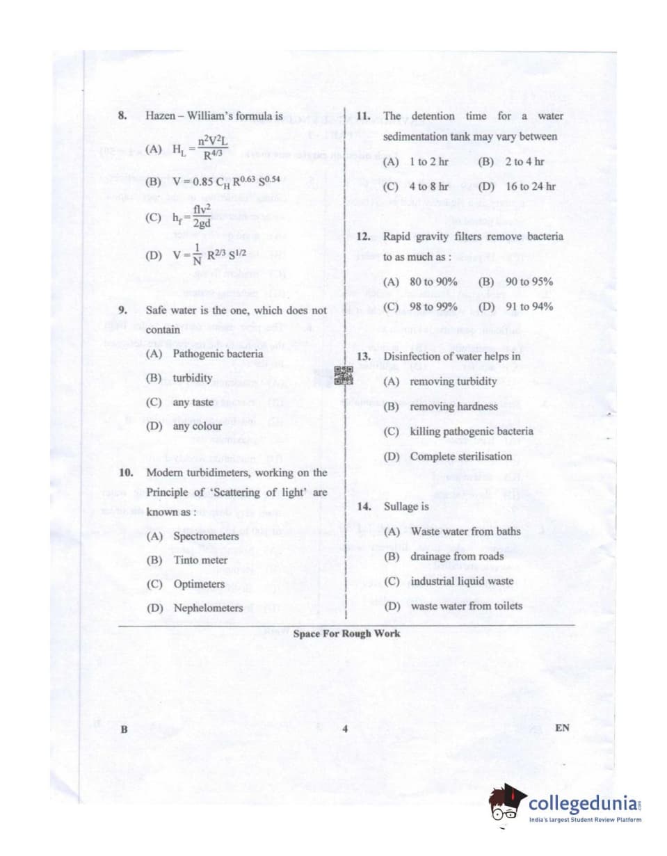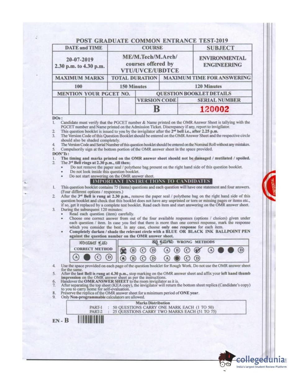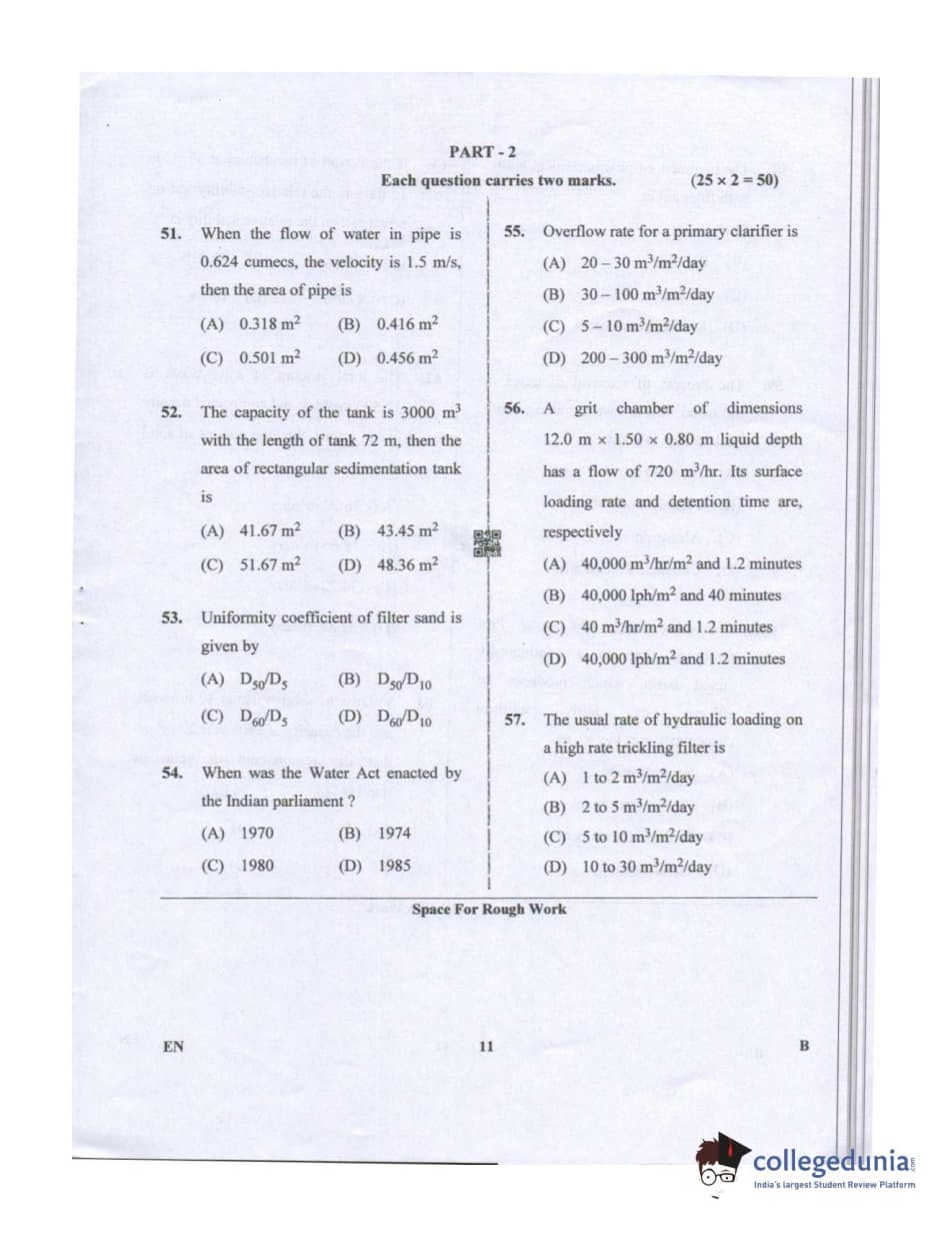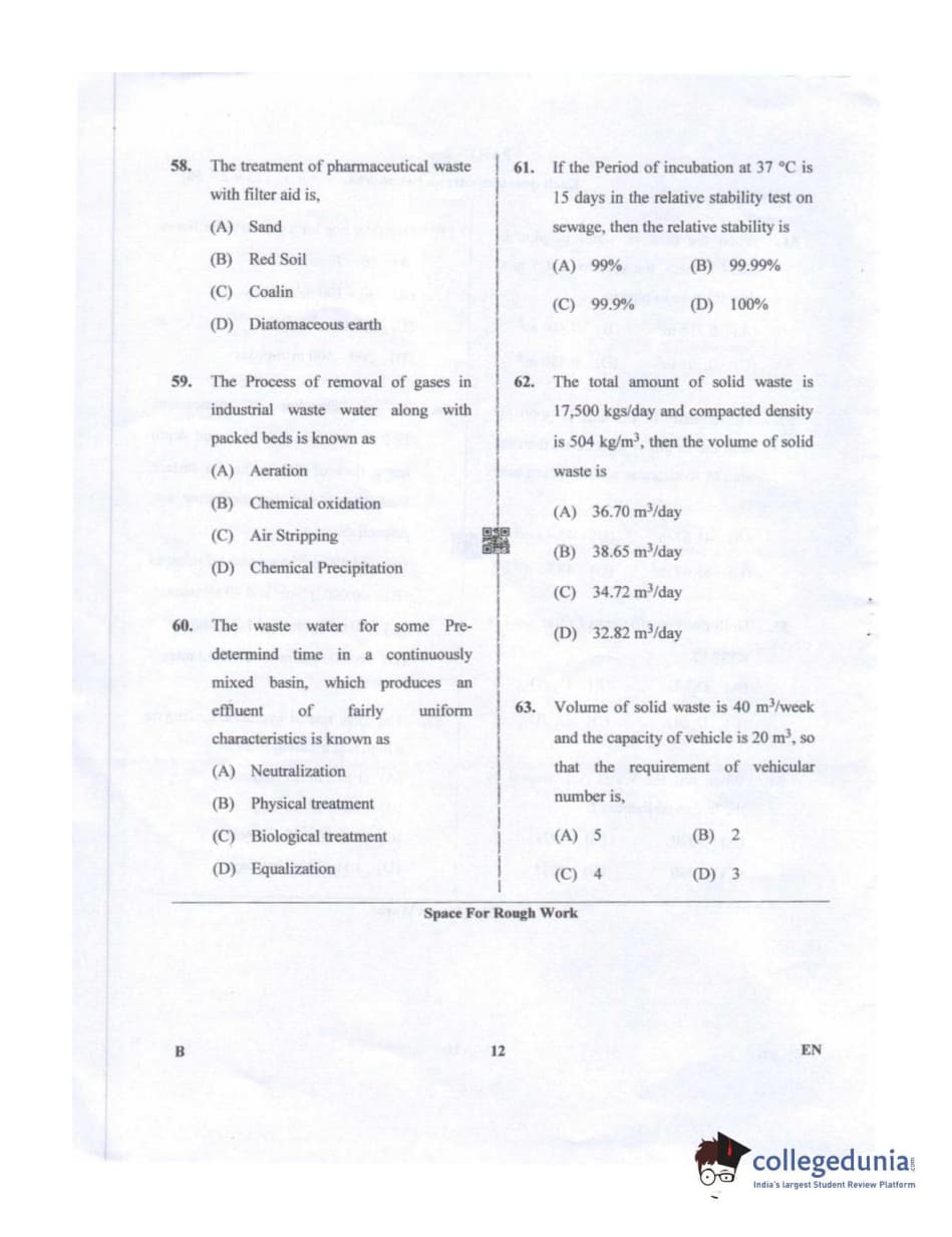 Karnataka PGCET 2019 Environmental Engineering Question paper with answer key pdf conducted on July 20, 2019 in Afternoon Session 2:30 PM to 4:30 PM for B is available for download. The exam was successfully organized by Karnataka Examinations Authority (KEA). The question paper comprised a total of 75 questions.