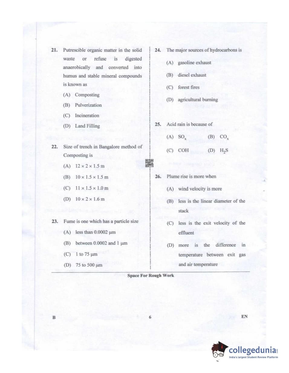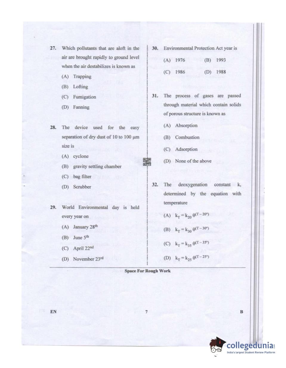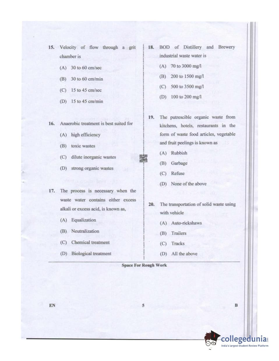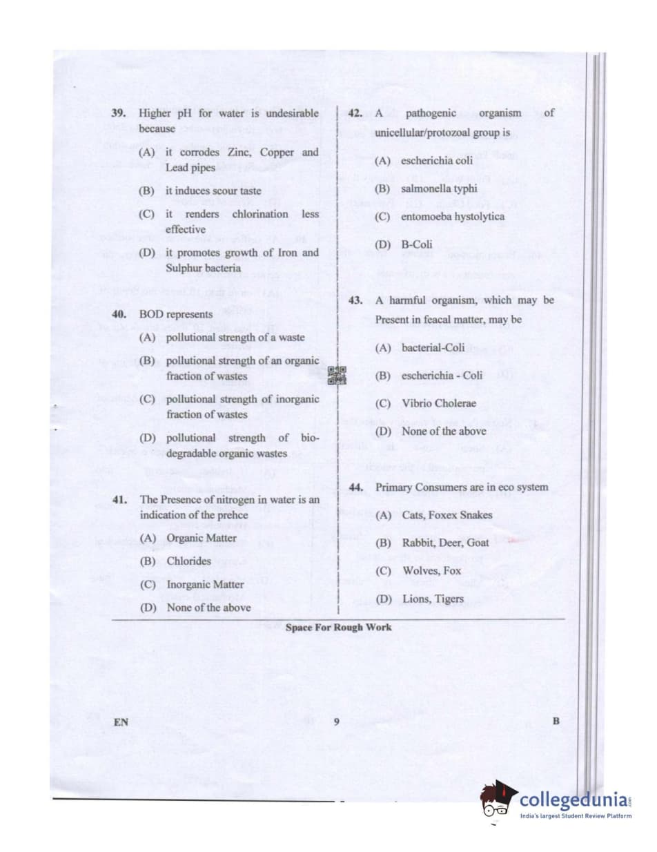 Karnataka PGCET 2019 Environmental Engineering Question paper with answer key pdf conducted on July 20, 2019 in Afternoon Session 2:30 PM to 4:30 PM for B is available for download. The exam was successfully organized by Karnataka Examinations Authority (KEA). The question paper comprised a total of 75 questions.