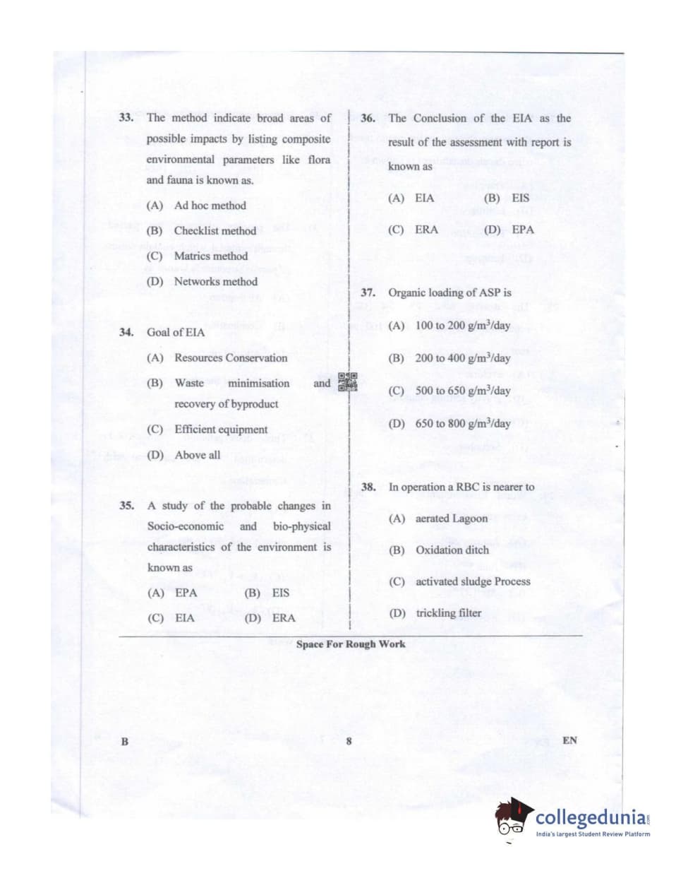 Karnataka PGCET 2019 Environmental Engineering Question Paper with Answer Key PDF for Afternoon Session