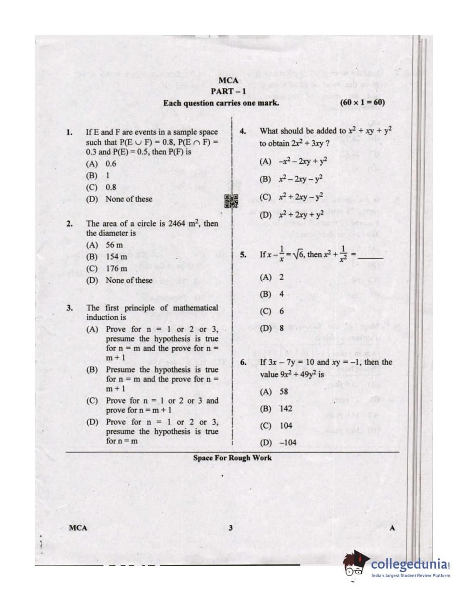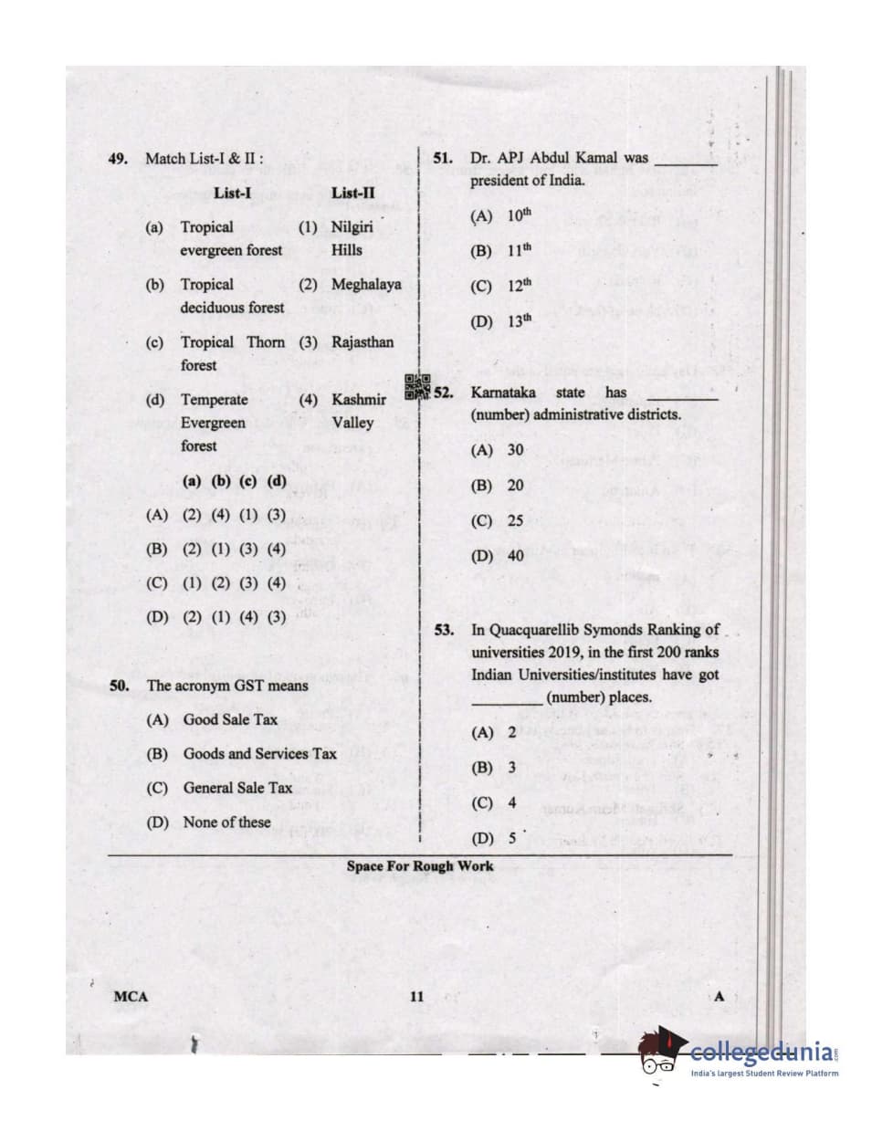 Karnataka PGCET 2019 MCA Question Paper with Answer Key PDF for Morning Session