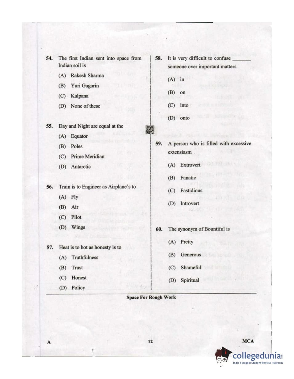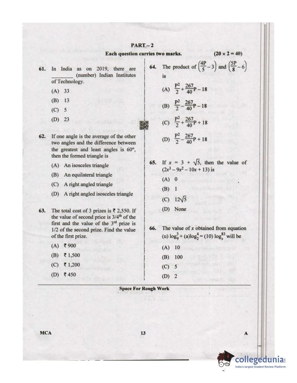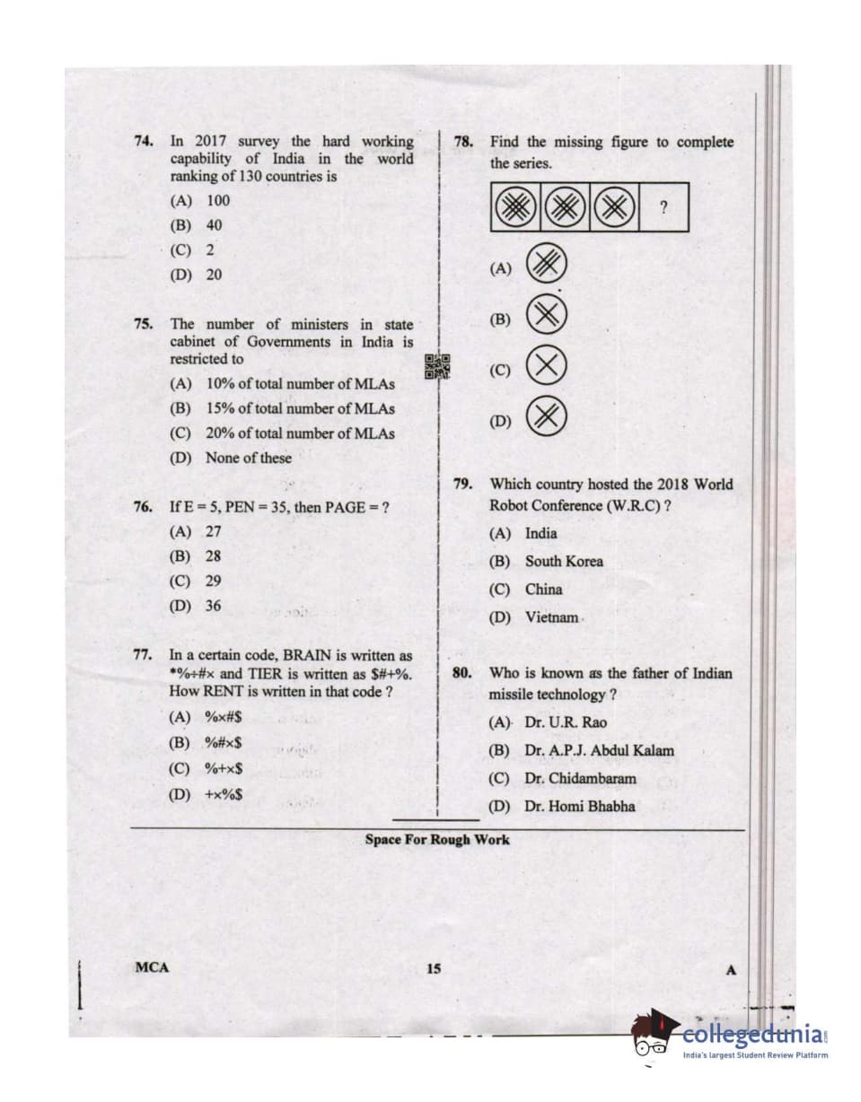 Karnataka PGCET 2019 MCA Question paper with answer key pdf conducted on July 21, 2019 in Morning Session 10:30 AM to 12:30 PM for A is available for download. The exam was successfully organized by Karnataka Examinations Authority (KEA). The question paper comprised a total of 80 questions.