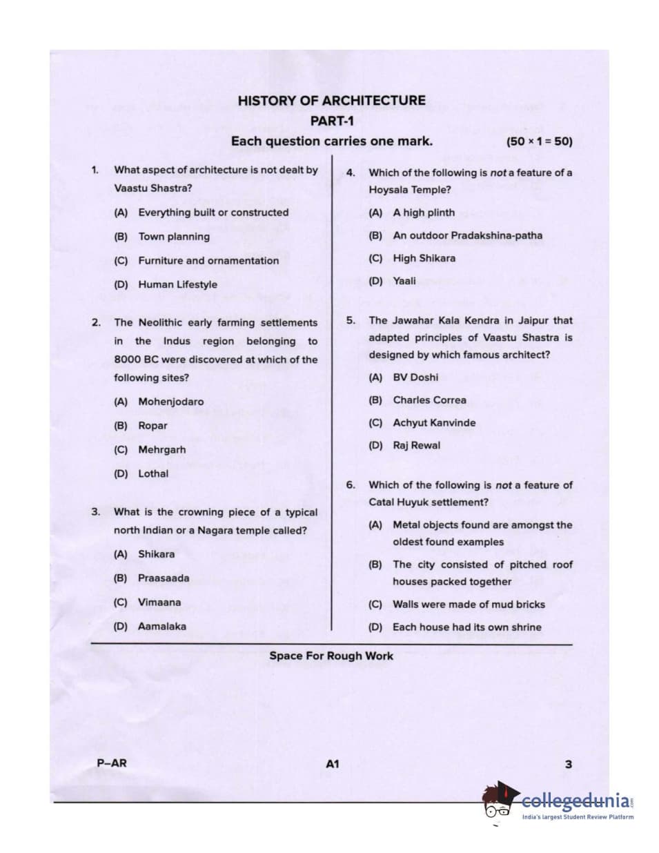 Karnataka PGCET 2020 Architecture Question Paper with Answer Key PDF for Afternoon Session