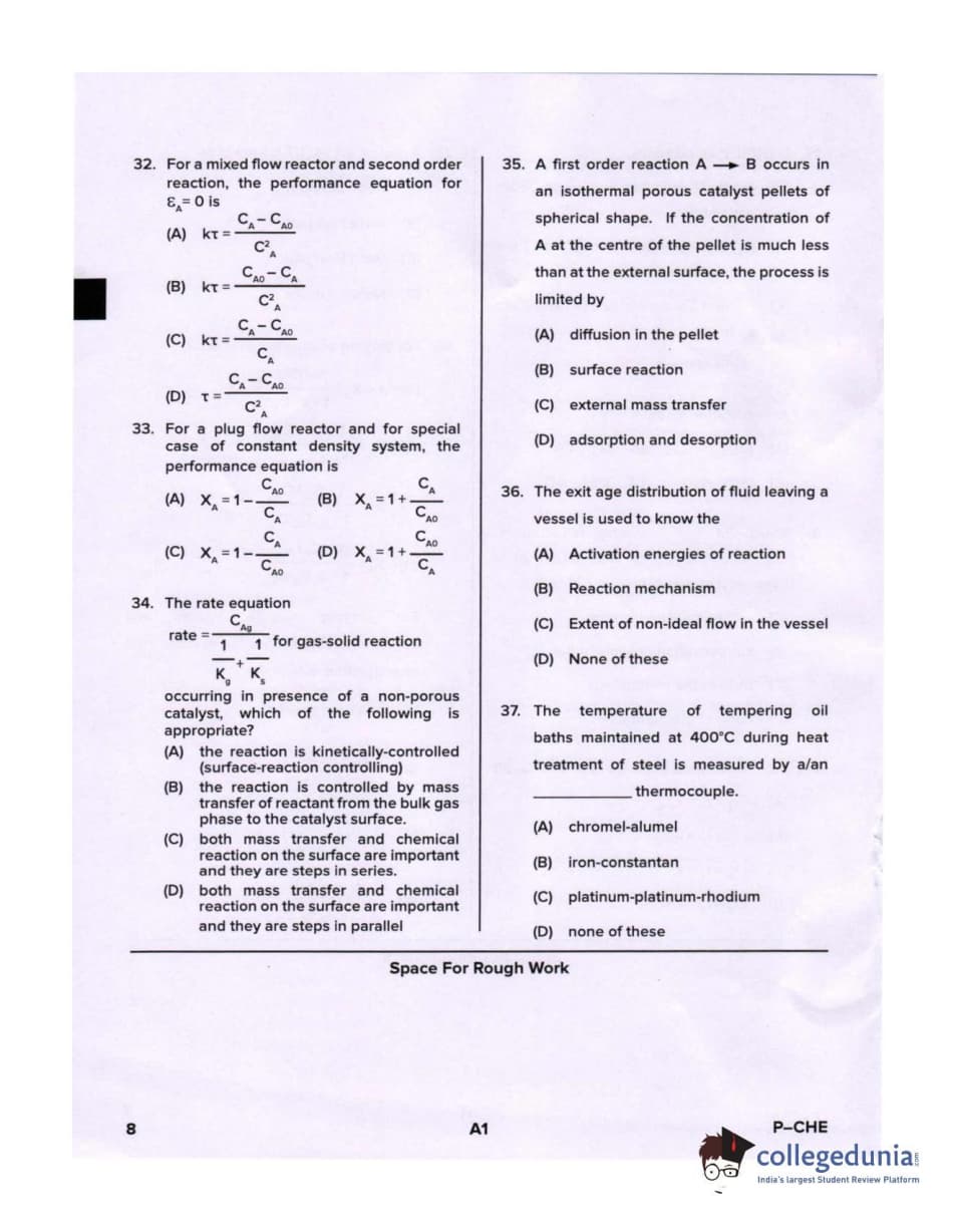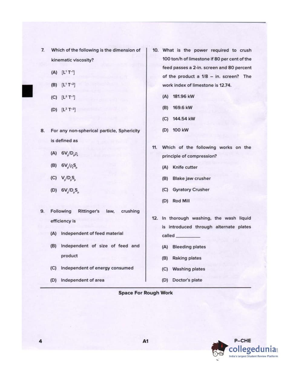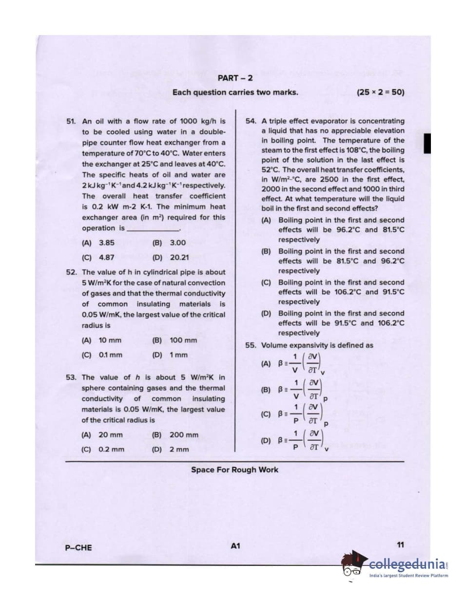 Karnataka PGCET 2020 Chemical Engineering Question Paper with Answer Key PDF for Afternoon Session