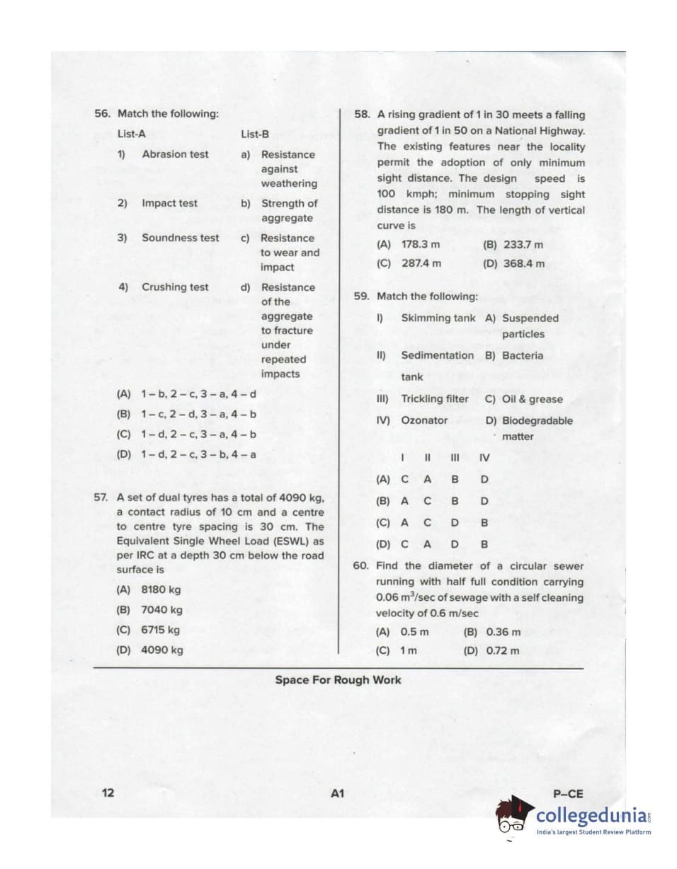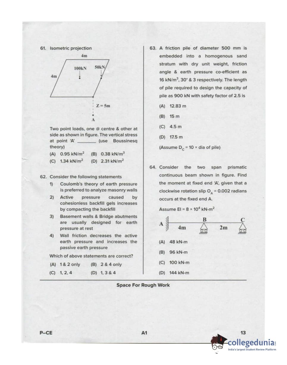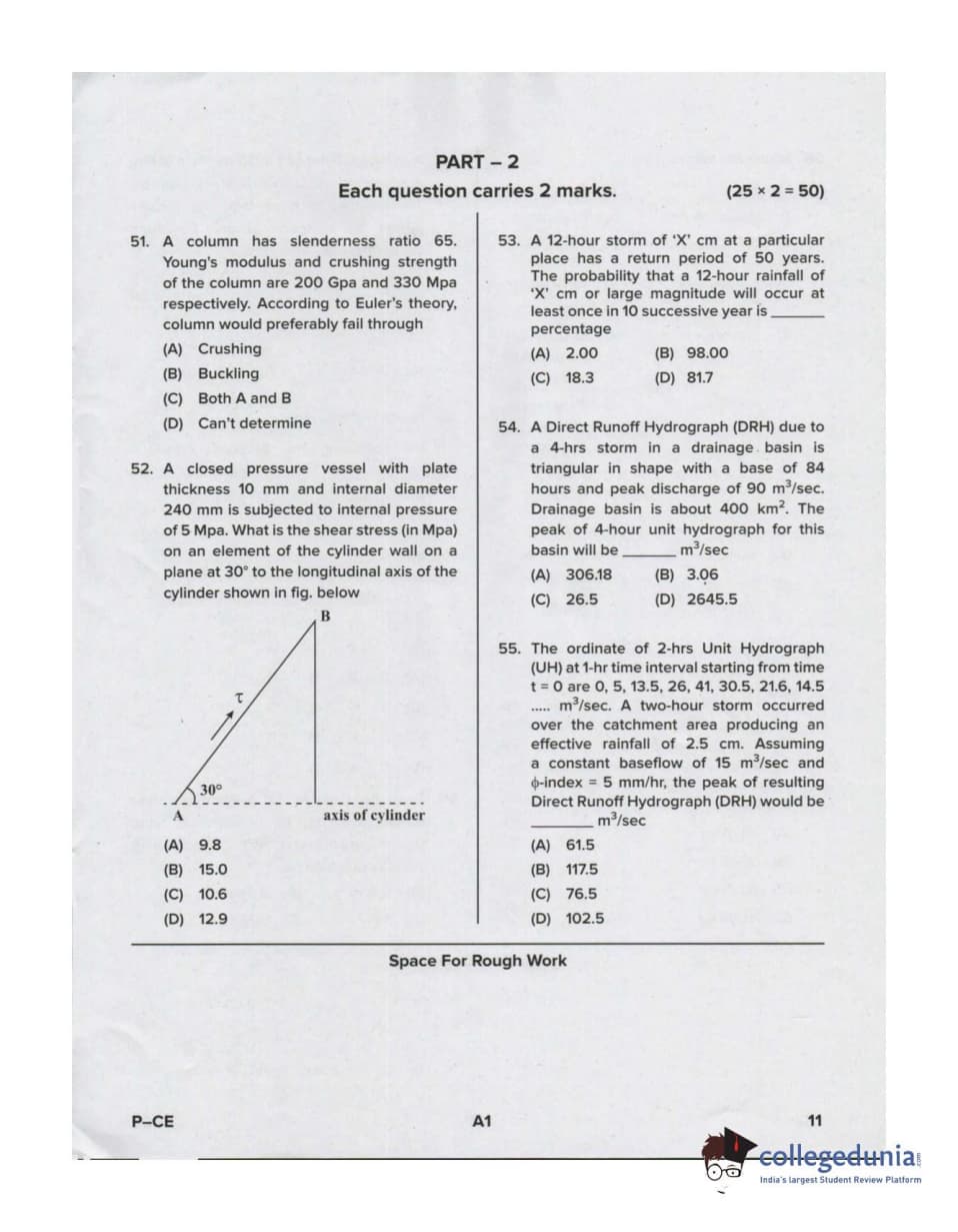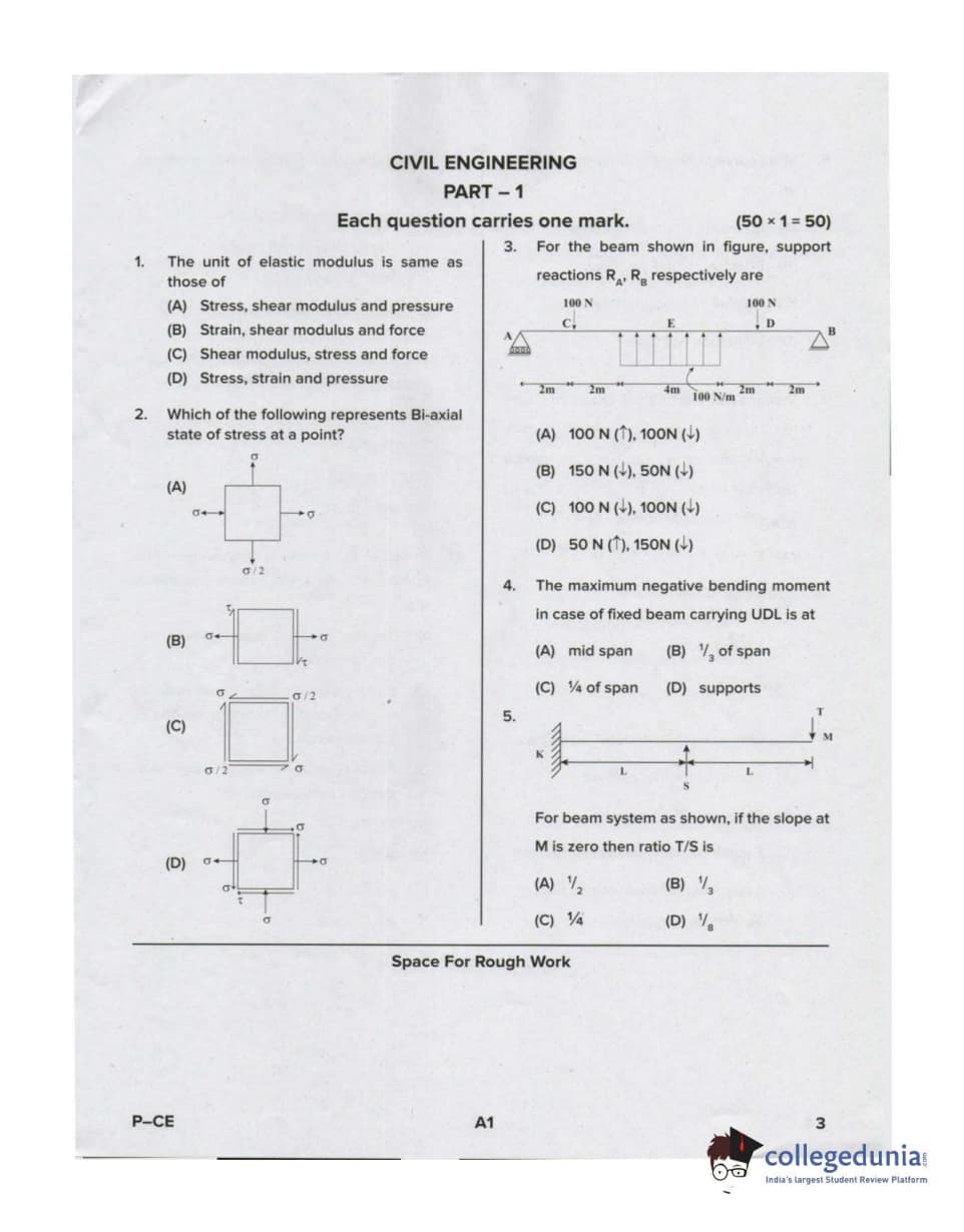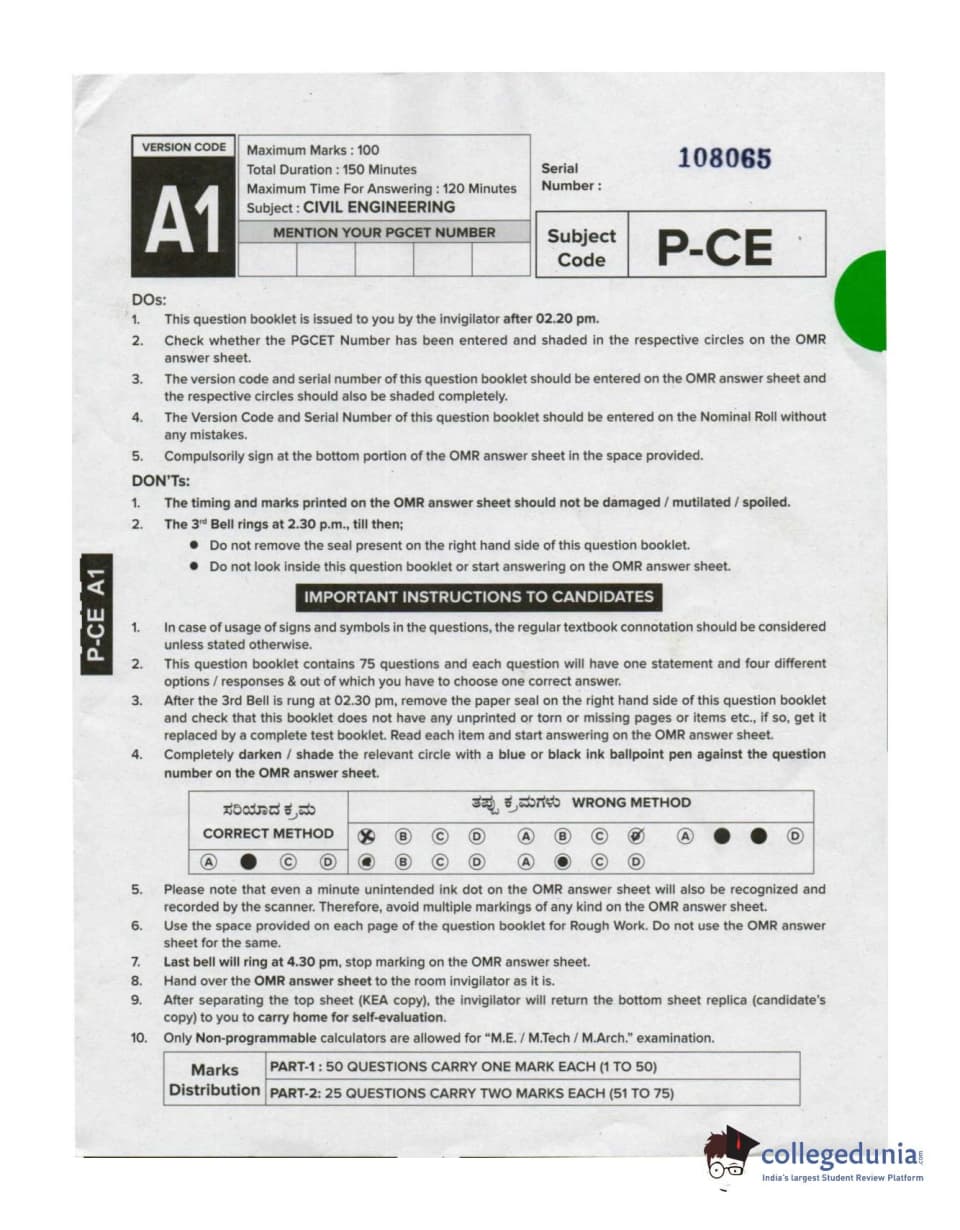 Karnataka PGCET 2020 Civil Engineering Question paper with answer key pdf conducted on October 13, 2020 in Afternoon Session 2:30 PM to 4:30 PM for A-1 is available for download. The exam was successfully organized by Karnataka Examinations Authority (KEA). The question paper comprised a total of 75 questions.