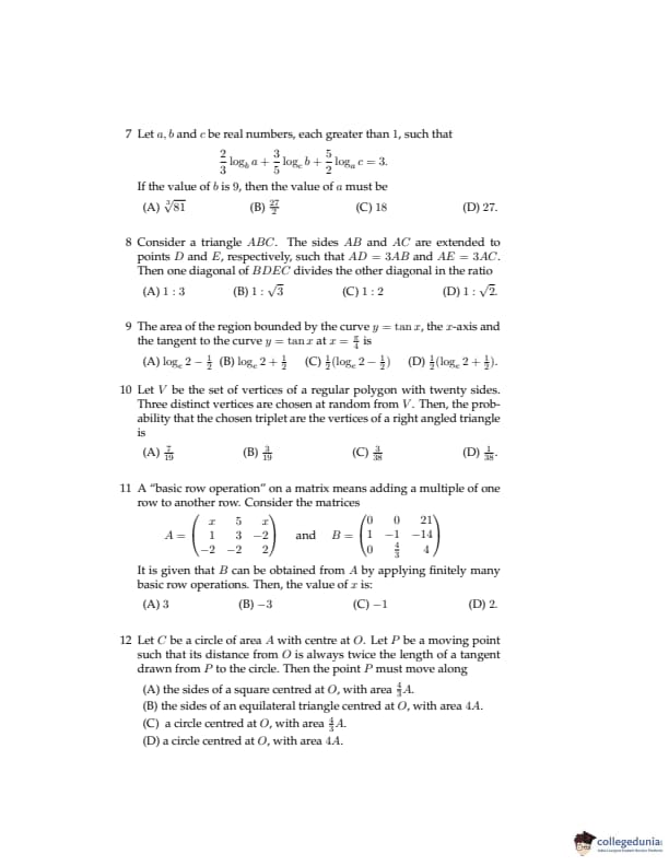 ISI Admission Test 2017 Bachelor of Mathematics Question paper with answer key pdf conducted on May 14, 2017 is available for download. The exam was successfully organized by Indian Statistical Institute (ISI). The question paper comprised a total of 30 questions.