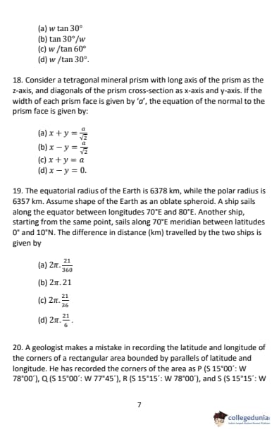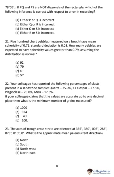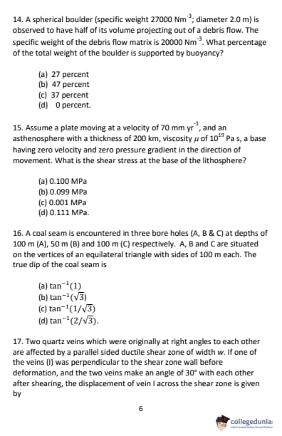 ISI Admission Test 2017 Junior Research Fellowship in Geology Question Paper with Answer Key PDFs