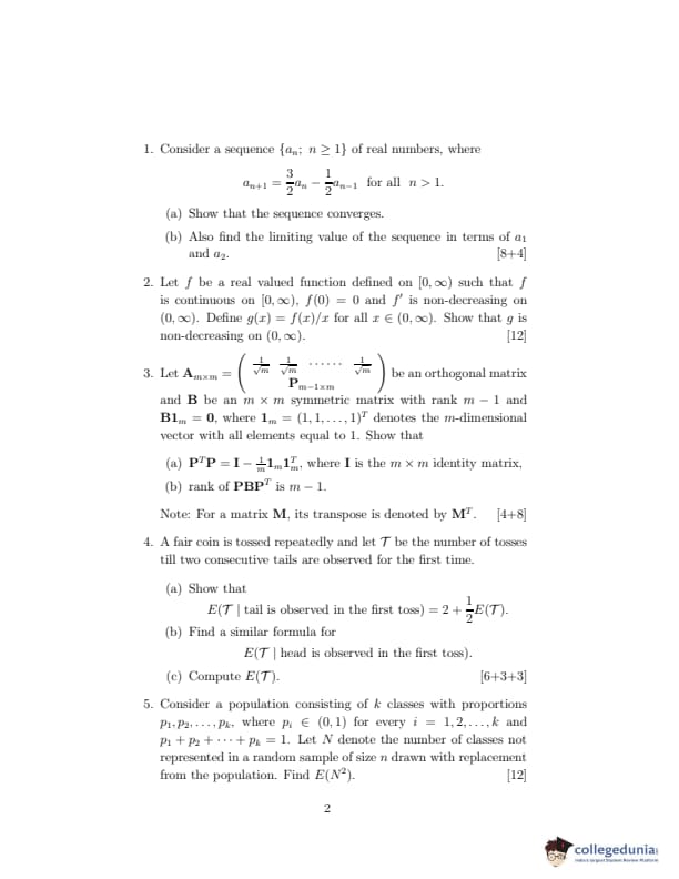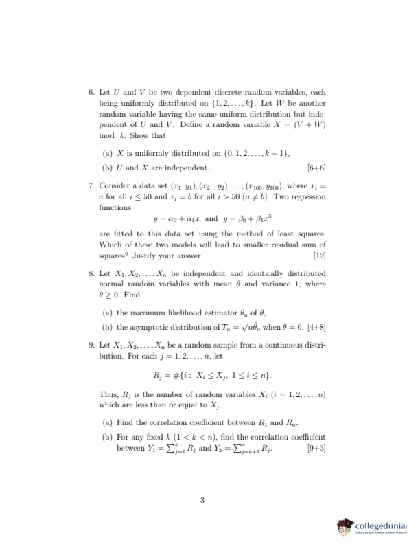 ISI Admission Test 2017 Junior Research Fellowship in Statistics Question paper with answer key pdf conducted on May 14, 2017 is available for download. The exam was successfully organized by Indian Statistical Institute (ISI). The question paper comprised a total of 10 questions.