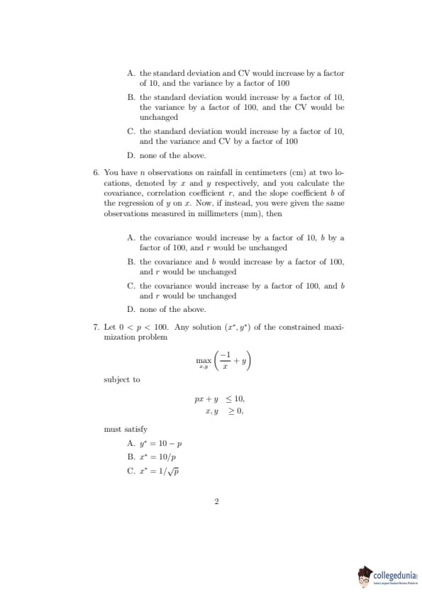 ISI Admission Test 2017 Master of Science in Quantitative Economics Question Paper with Answer Key PDFs