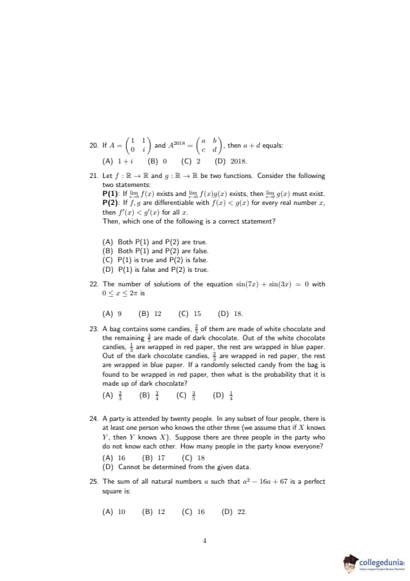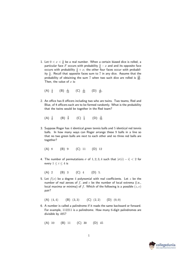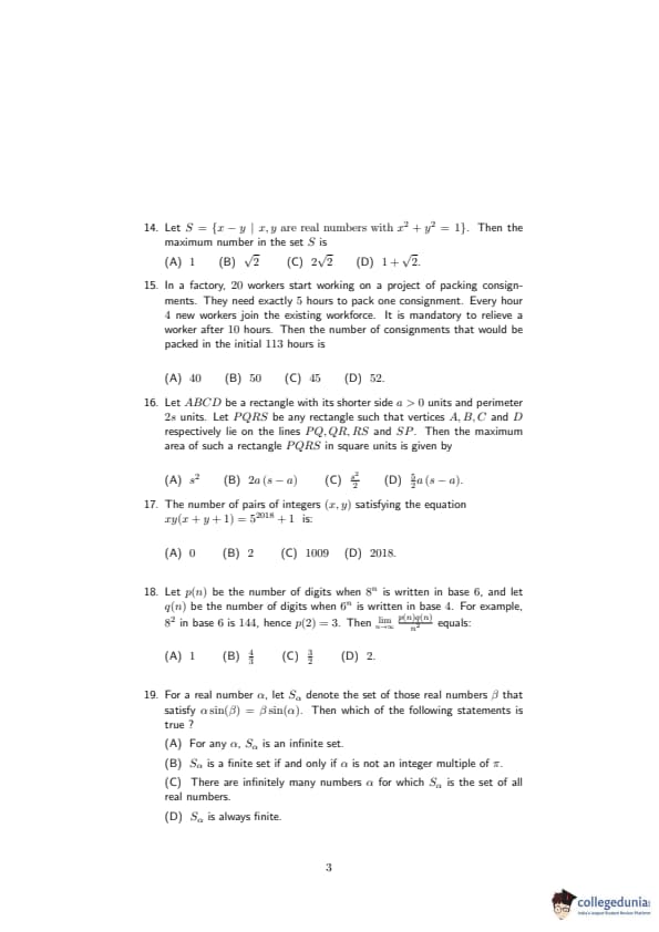 ISI Admission Test 2018 Bachelor of Statistics Question paper with answer key pdf conducted on May 13, 2018 is available for download. The exam was successfully organized by Indian Statistical Institute (ISI). The question paper comprised a total of 30 questions.