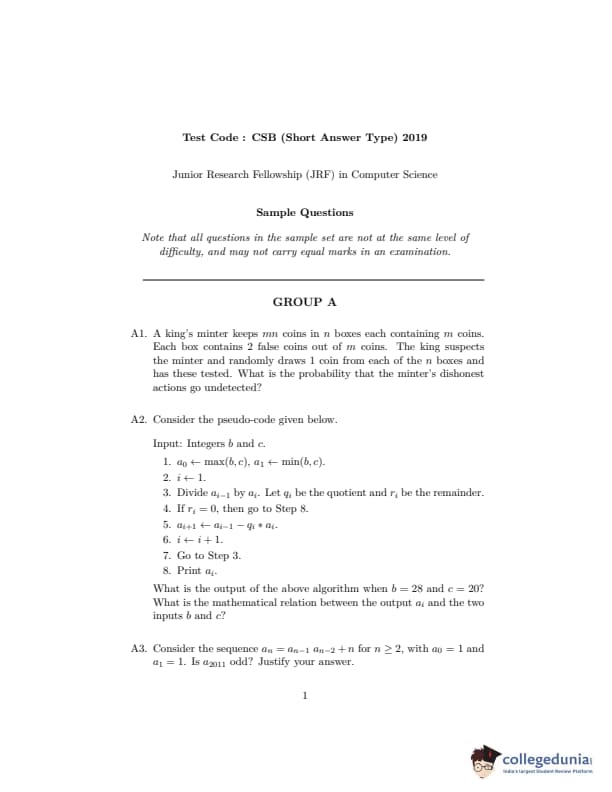 | ISI Admission Test 2018 Junior Research Fellowship in Computer Science Question Paper PDF | ISI Admission Test 2018 Junior Research Fellowship in Computer Science Answer Key PDF |