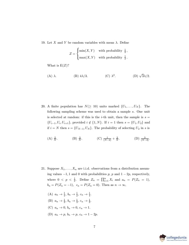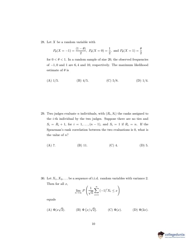 ISI Admission Test 2018 Master Of Statistics Question paper with answer key pdf conducted on May 13, 2018 is available for download. The exam was successfully organized by Indian Statistical Institute (ISI). The question paper comprised a total of 30 questions.