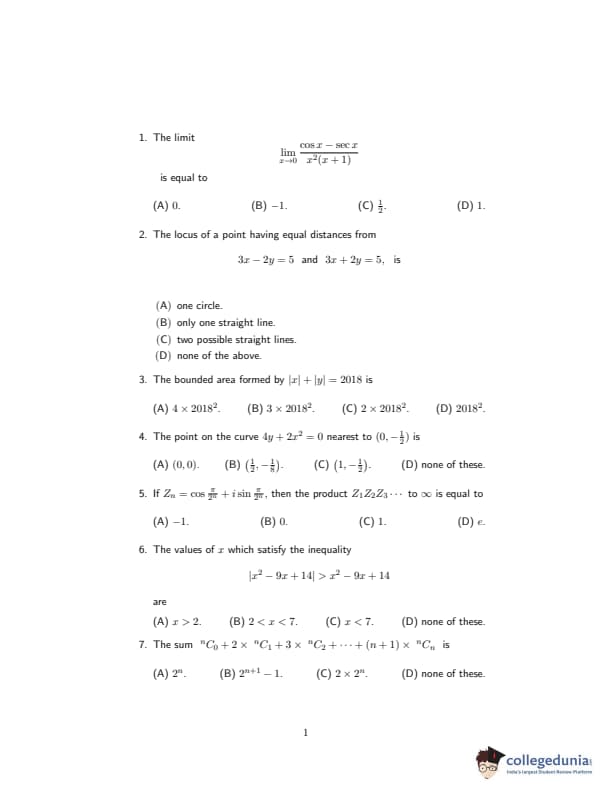 ISI Admission Test 2018 PG Diploma in Statistical Methods and Analytics Question paper with answer key pdf conducted on May 13, 2018 is available for download. The exam was successfully organized by Indian Statistical Institute (ISI). The question paper comprised a total of 30 questions.