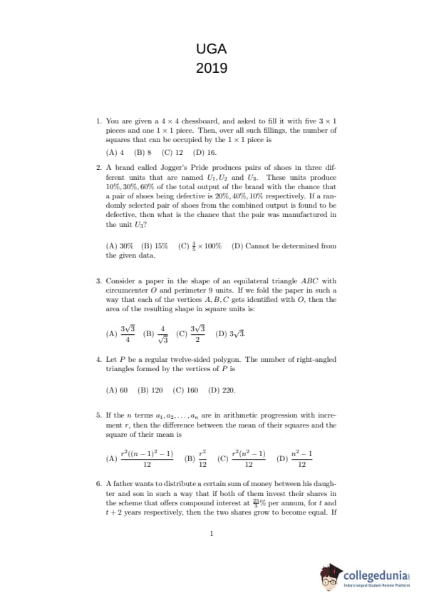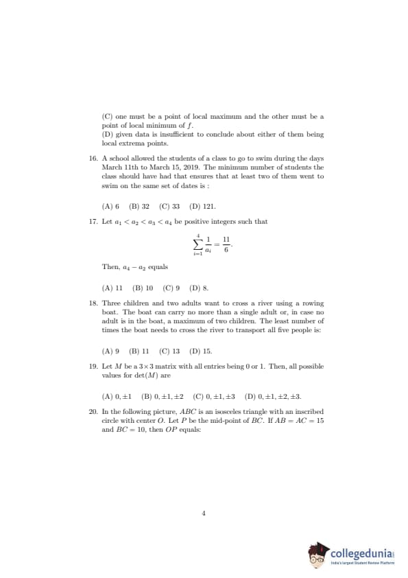 ISI Admission Test 2019 Bachelor of Mathematics Question paper with answer key pdf conducted on May 5, 2019 is available for download. The exam was successfully organized by Indian Statistical Institute (ISI). The question paper comprised a total of 30 questions.