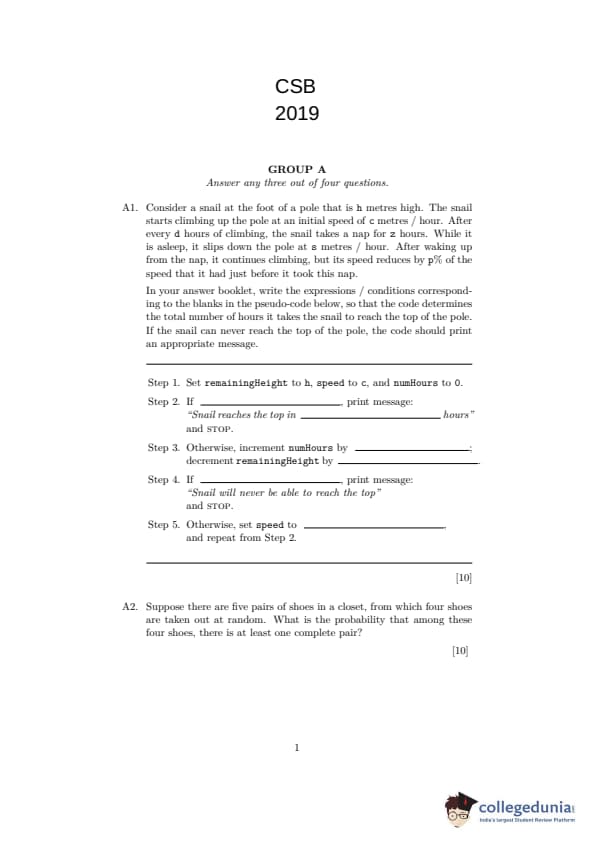 ISI Admission Test 2019 Junior Research Fellowship in Computer Science Question paper with answer key pdf conducted on May 5, 2019 is available for download. The exam was successfully organized by Indian Statistical Institute (ISI). The question paper comprised a total of 46 questions.