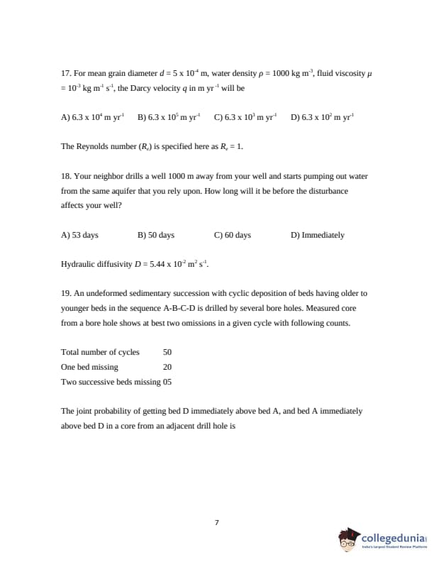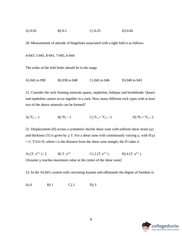 ISI Admission Test 2019 Junior Research Fellowship in Geology Question Paper with Answer Key PDFs