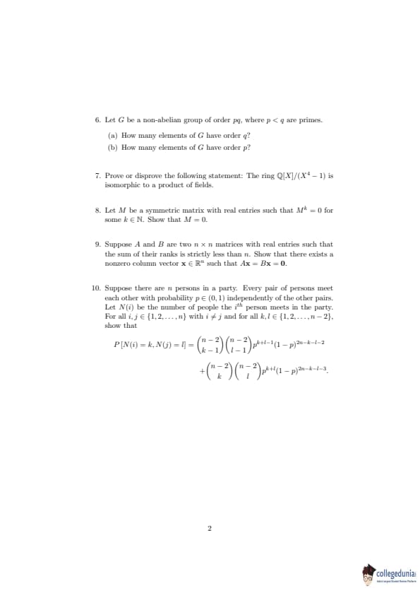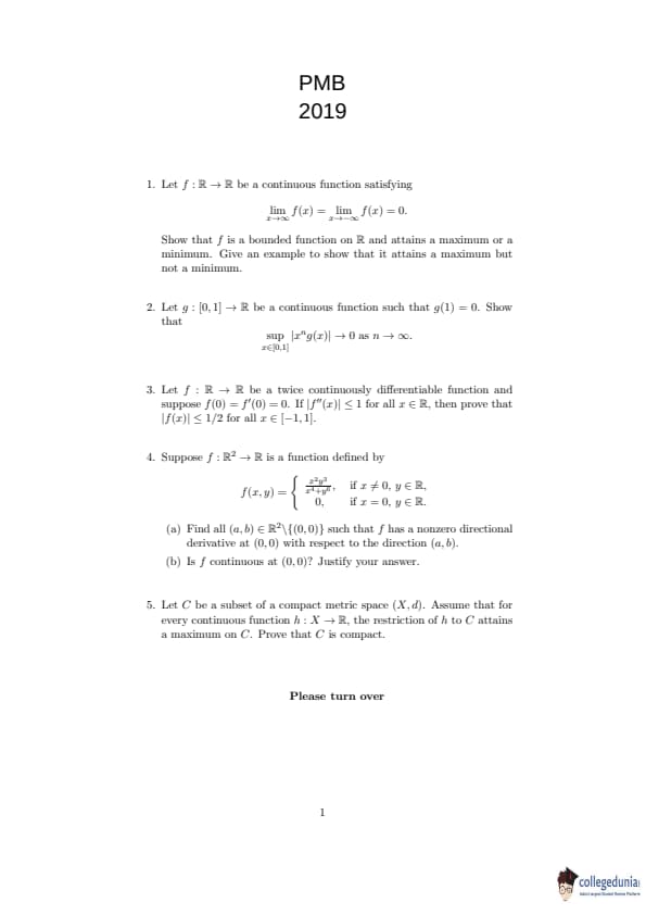 ISI Admission Test 2019 Master Of Mathematics Question paper with answer key pdf conducted on May 5, 2019 is available for download. The exam was successfully organized by Indian Statistical Institute (ISI). The question paper comprised a total of 10 questions.