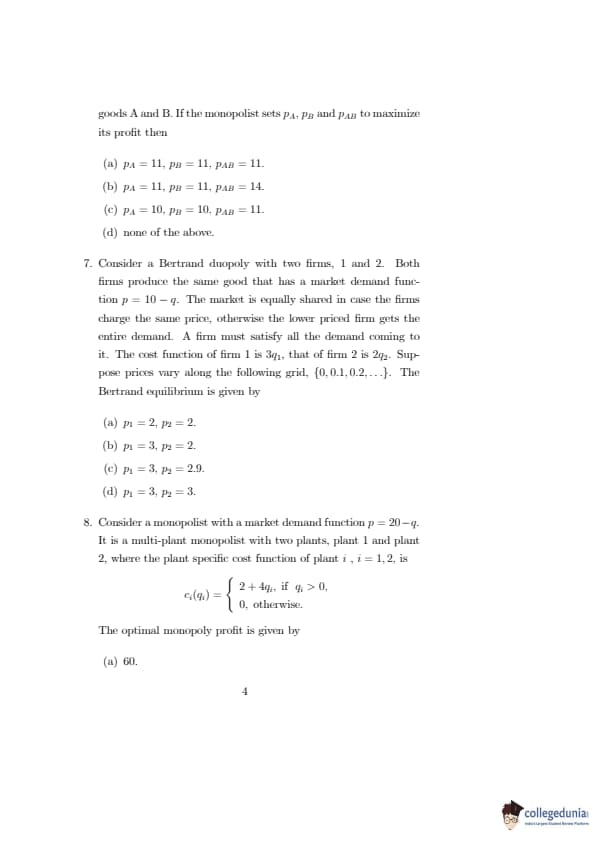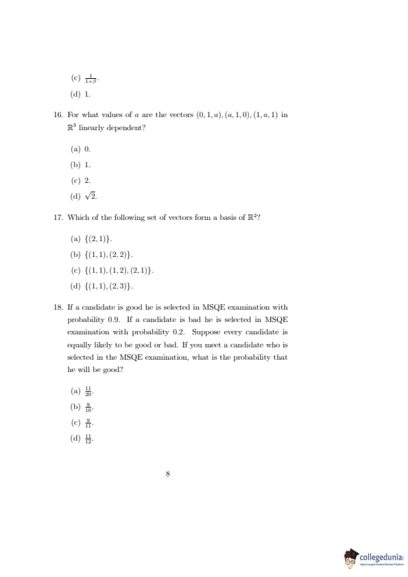ISI Admission Test 2019 Master of Science in Quantitative Economics Question paper with answer key pdf conducted on May 5, 2019 is available for download. The exam was successfully organized by Indian Statistical Institute (ISI). The question paper comprised a total of 15 questions.