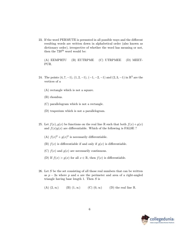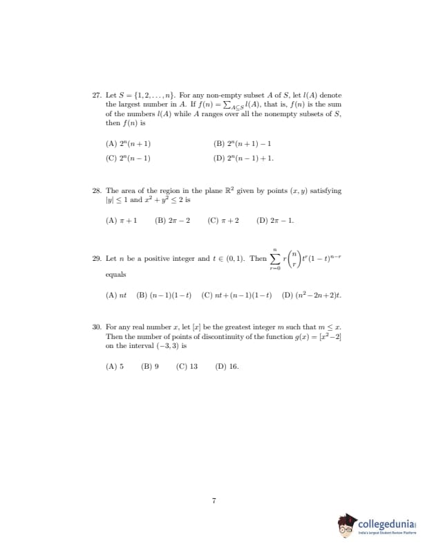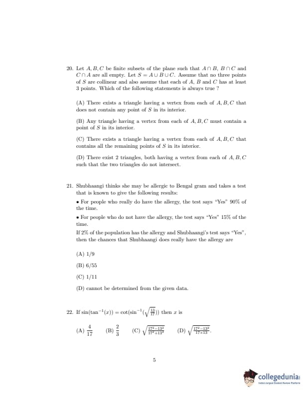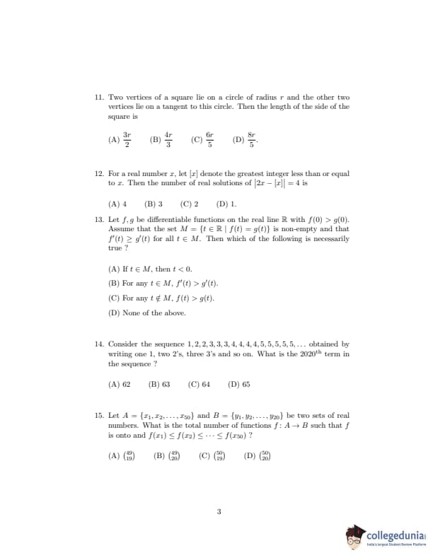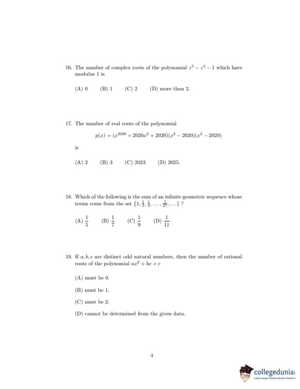 ISI Admission Test 2020 Bachelor in Statistics Question paper with answer key pdf conducted on September 20, 2020 is available for download. The exam was successfully organized by Indian Statistical Institute (ISI). The question paper comprised a total of 30 questions.