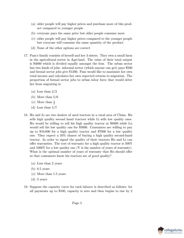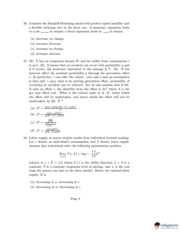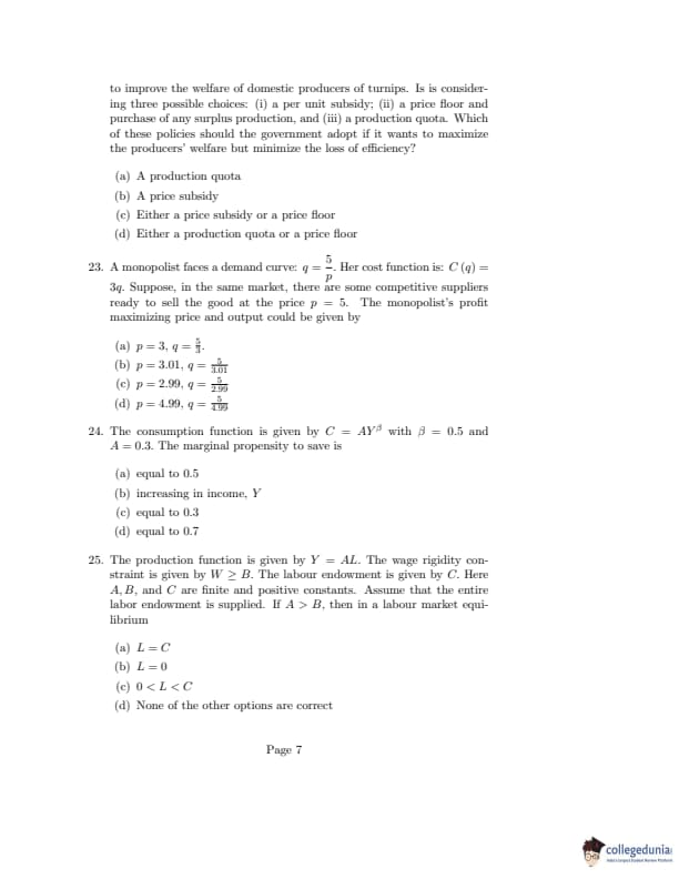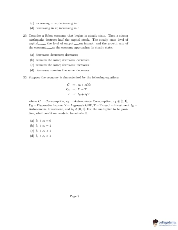 ISI Admission Test 2020 Master of Science in Quantitative Economics Question Paper with Answer Key PDFs