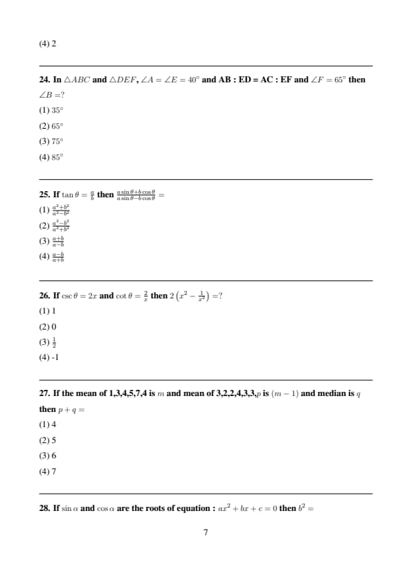 The value of \( b \) is 0. Quick Tip: Factor Theorem: If \( (x-k) \) is a factor of \( P(x) \), then \( P(k) = 0 \). Here, \( (x-a) \) is a factor, so \(k=a\). Let \( P(x) = x^3 - 3x^2a + 2a^2x + b \). Set \( P(a) = 0 \): \( a^3 - 3a^2(a) + 2a^2(a) + b = 0 \) \( a^3 - 3a^3 + 2a^3 + b = 0 \) \( (1-3+2)a^3 + b = 0 \) \( 0 \cdot a^3 + b = 0 \) \( 0 + b = 0 \) \( b = 0 \)