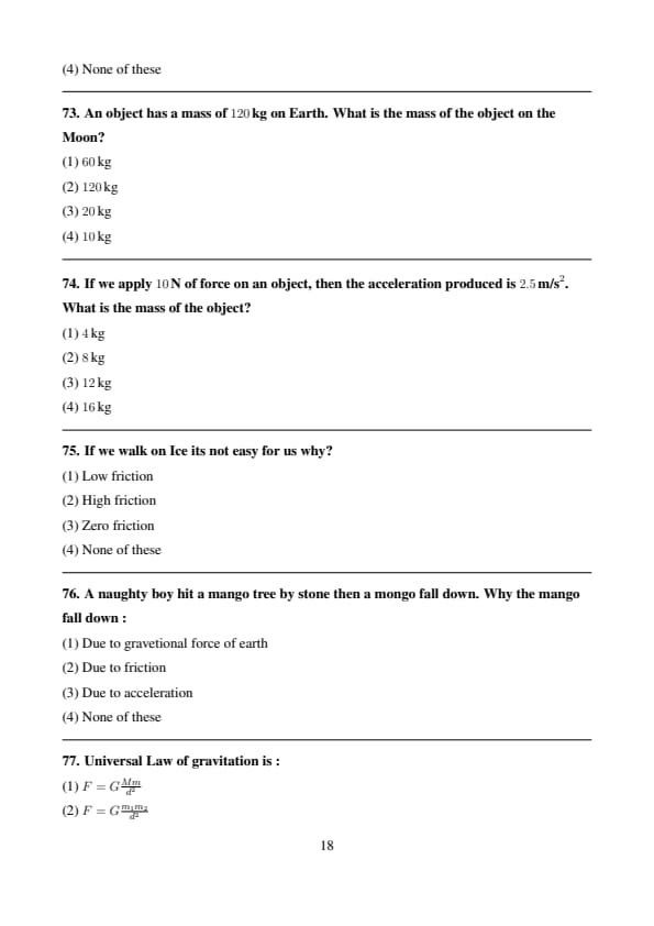 If we apply \( 10 \, N \) of force on an object, then the acceleration produced is \( 2.5 \, m/s^2 \). What is the mass of the object?