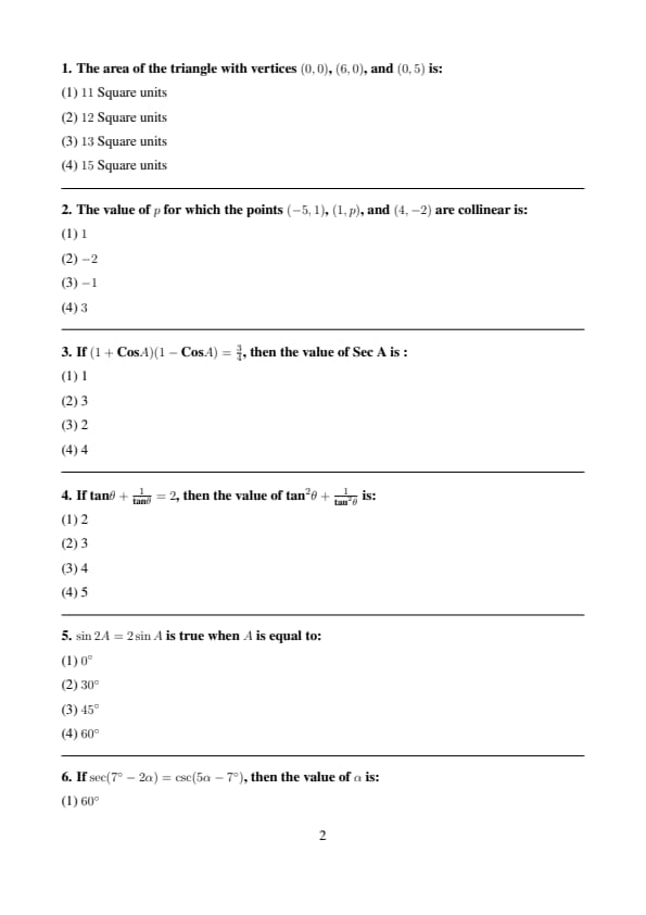 If \(tan \theta + \frac{1}{tan \theta} = 2\), then the value of \(tan^2 \theta + \frac{1}{tan^2 \theta}\) is: