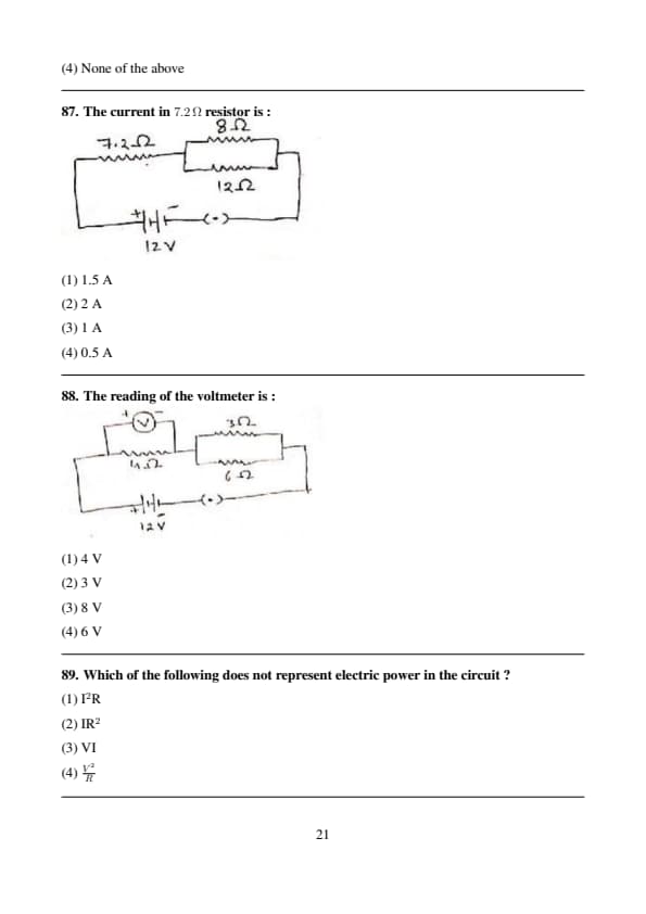 Which of the following does not represent electric power in the circuit ?