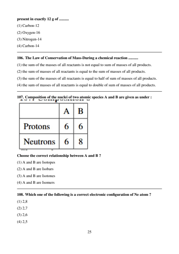 Composition of the nuclei of two atomic species A and B are given as under :