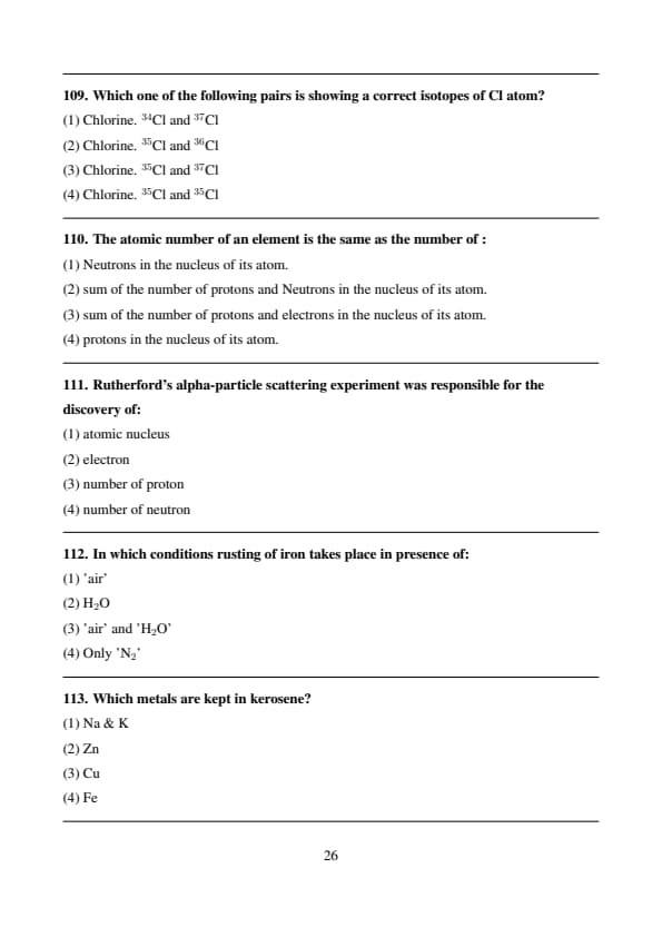 Which one of the following pairs is showing a correct isotopes of Cl atom?