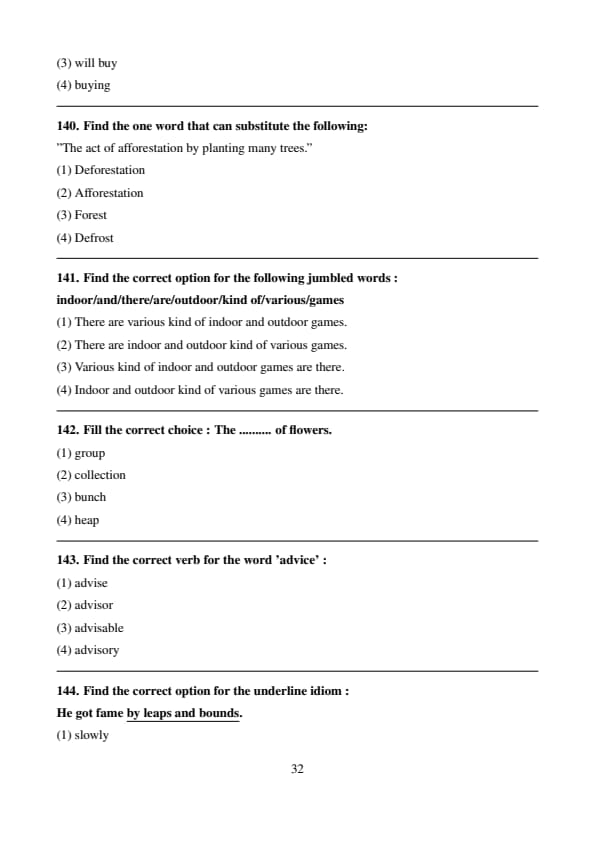 Find the correct option for the following jumbled words :