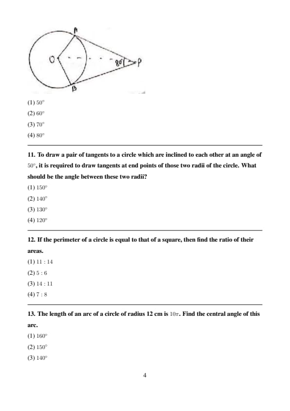 If tangents PA and PB from a point P to a circle with centre O are inclined to each other at angle of \(80^\circ\) in the fig, then \(\angle POA\) is equal to :