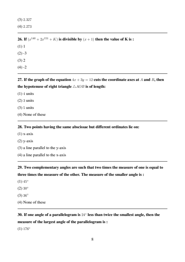 If \((x^{140} + 2x^{151} + K)\) is divisible by \((x+1)\) then the value of K is :