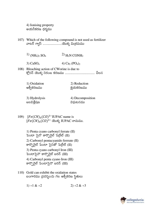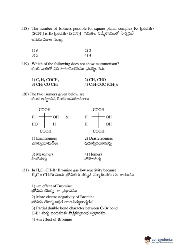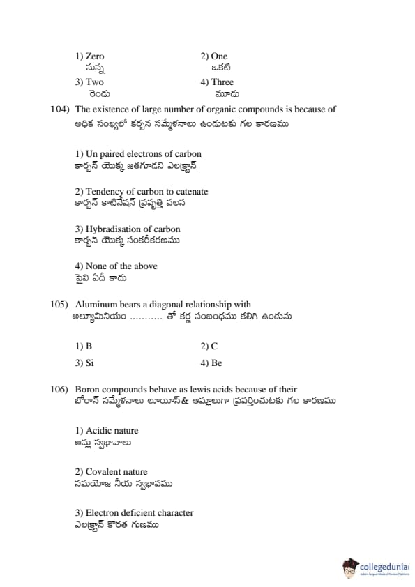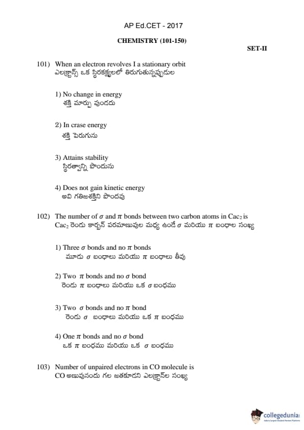 AP EDCET 2017 Chemistry Question paper with answer key pdf conducted on April 19, 2017 is available for download. The exam was successfully organized by Andhra University. The question paper comprised a total of 50 questions.
