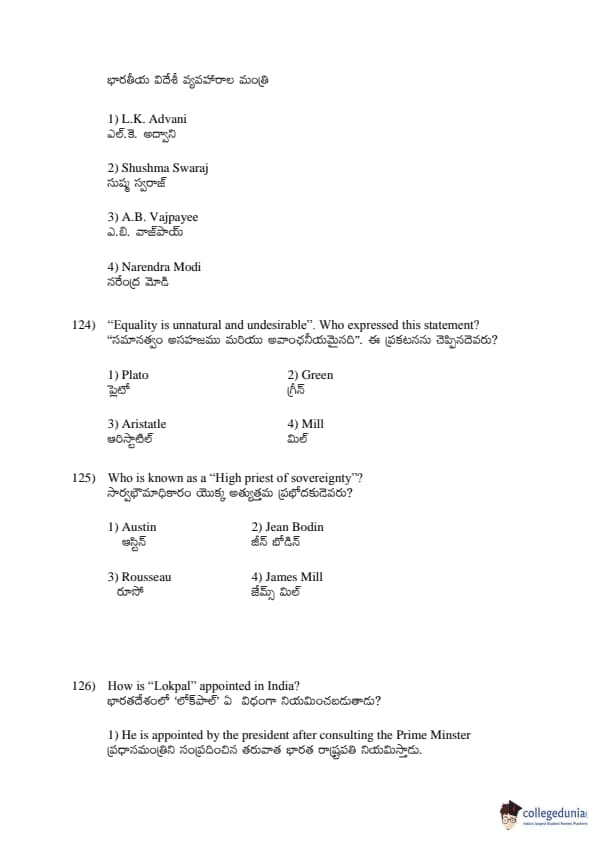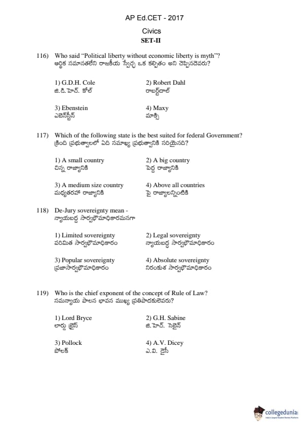 AP EDCET 2017 Civics Question Paper with Answer Key PDFs