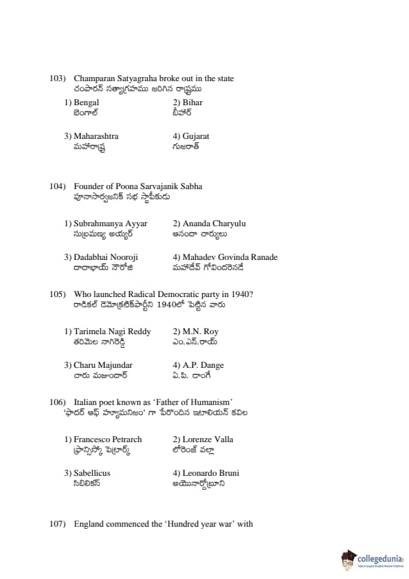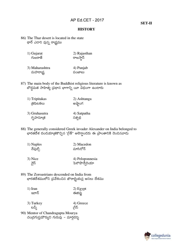 AP EDCET 2017 History Question Paper with Answer Key PDFs