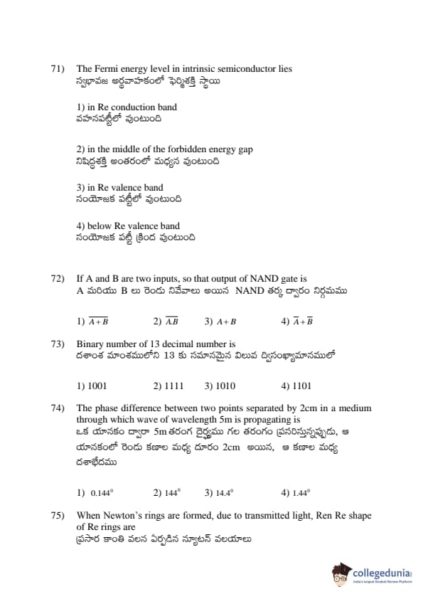| AP EDCET 2017 Physics Question Paper PDF | AP EDCET 2017 Physics Answer Key PDF |