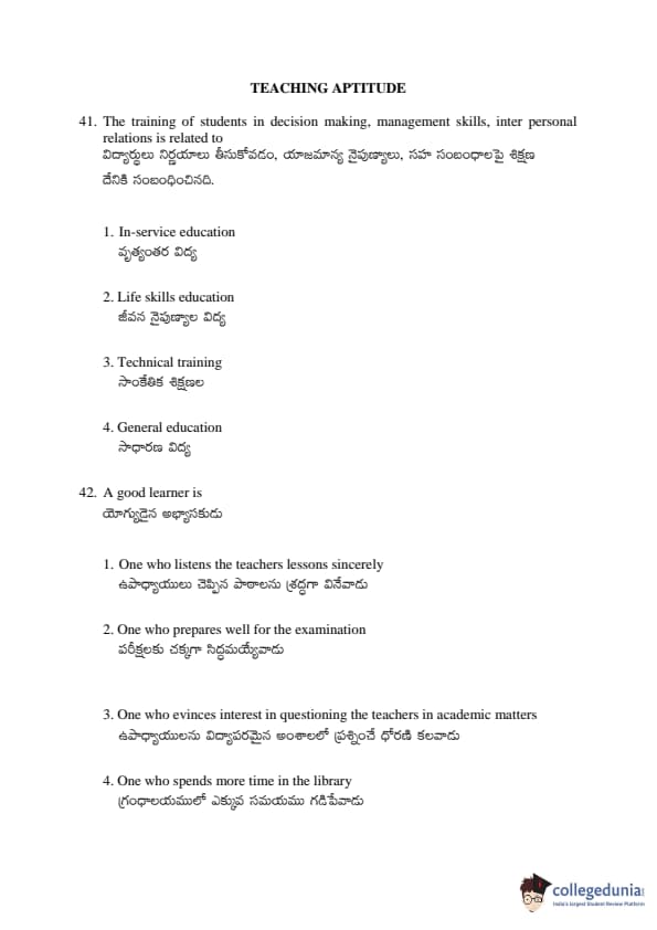 AP EDCET 2017 Teaching Aptitude Question Paper with Answer Key PDFs