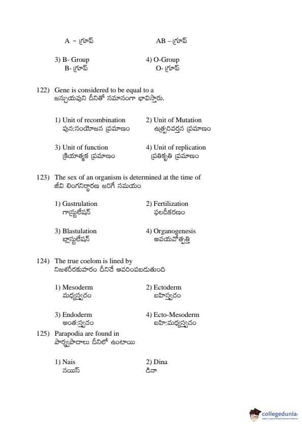 AP EDCET 2017 Zoology Question Paper with Answer Key PDFs