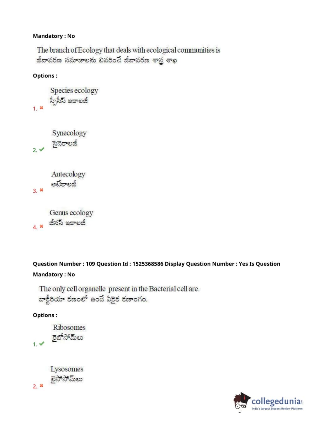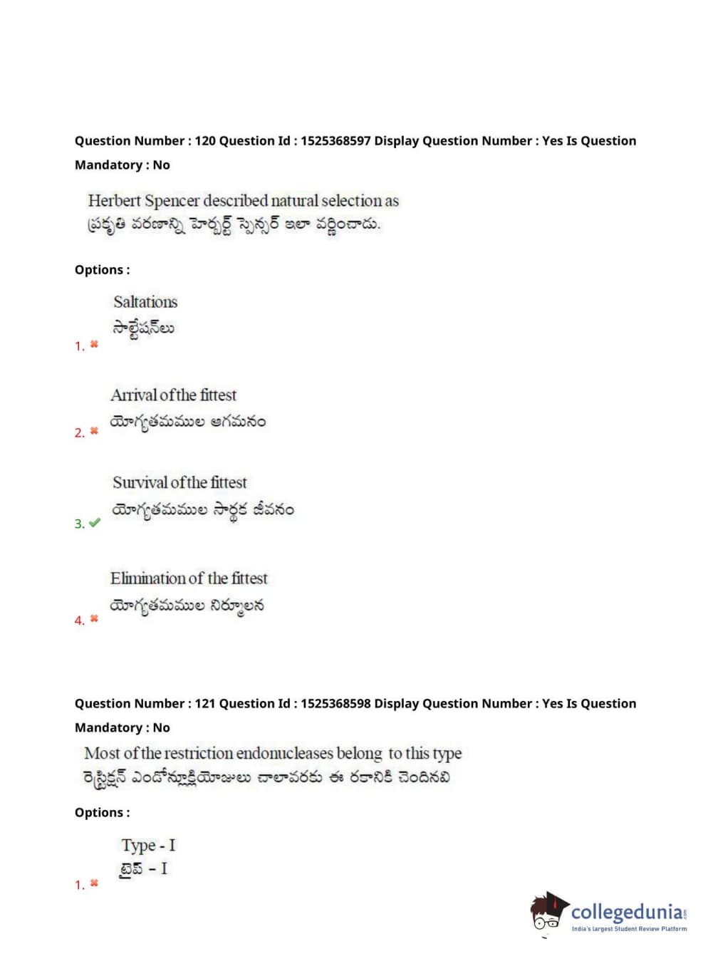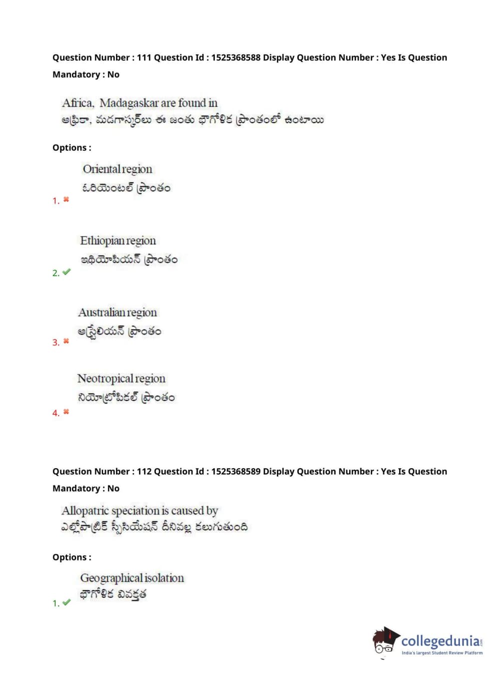 AP EDCET 2021 Biological Science Question Paper with Answer Key PDFs - Slot 1