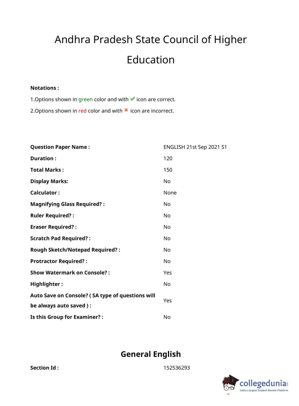 AP EDCET 2021 English Question paper with answer key pdf conducted on September 21, 2021 in Slot 1 is available for download. The exam was successfully organized by Andhra University. The question paper comprised a total of 150.0 questions.