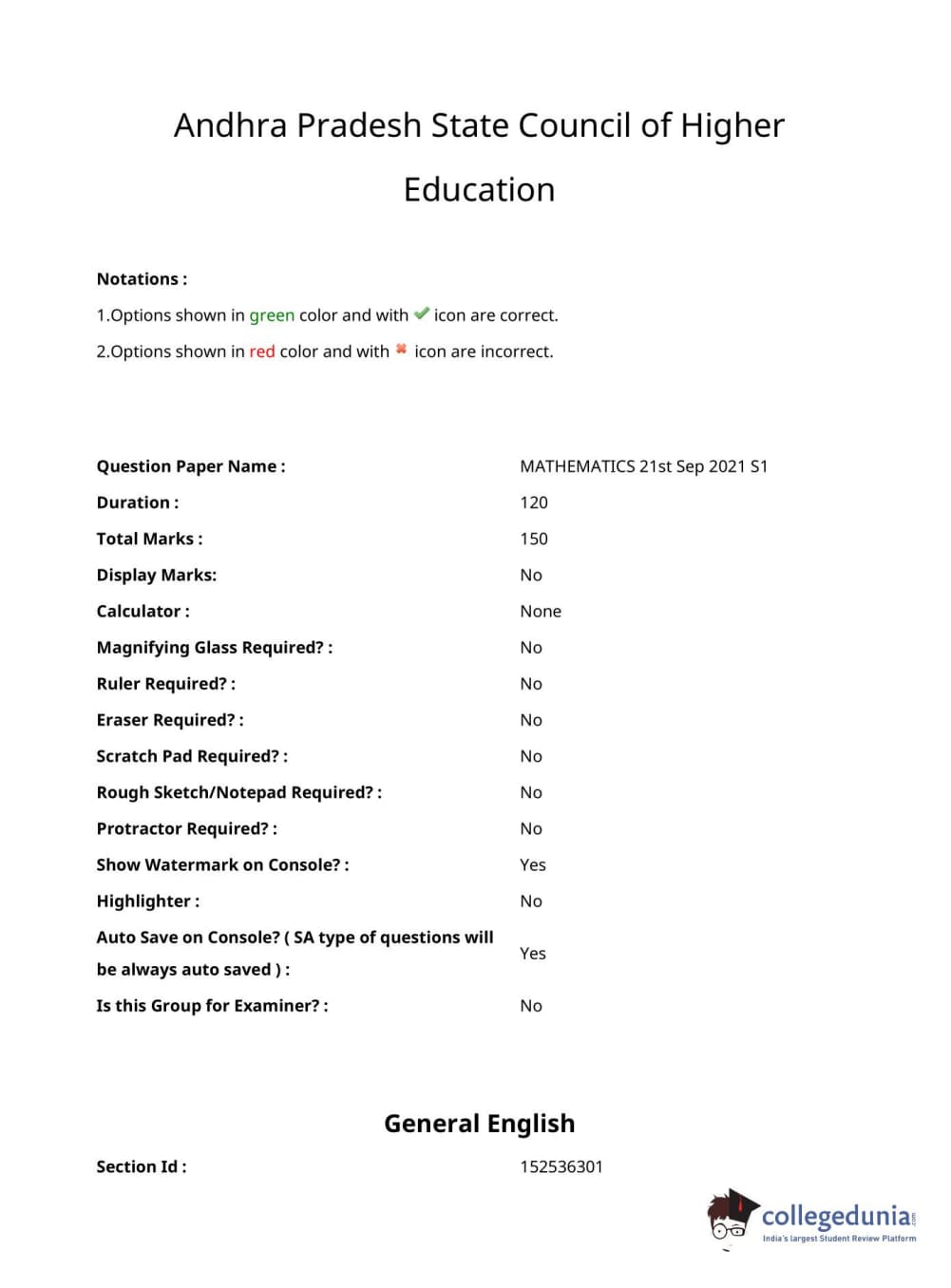 AP EDCET 2021 Mathematics Question paper with answer key pdf conducted on September 21, 2021 in Slot 1 is available for download. The exam was successfully organized by Andhra University. The question paper comprised a total of 150.0 questions.
