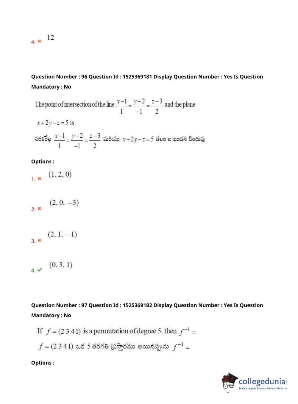 AP EDCET 2021 Mathematics Question Paper with Answer Key PDFs - Slot 1