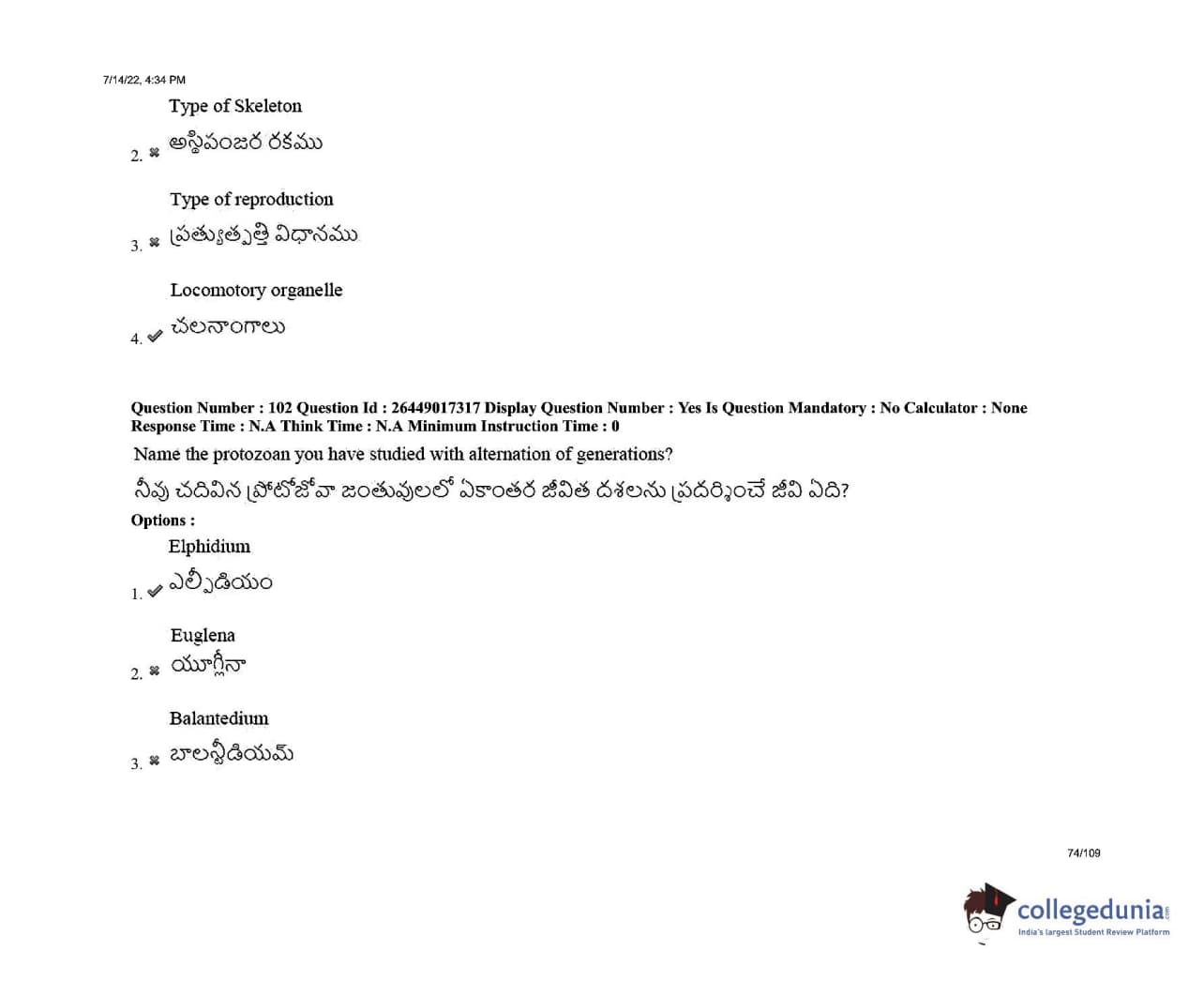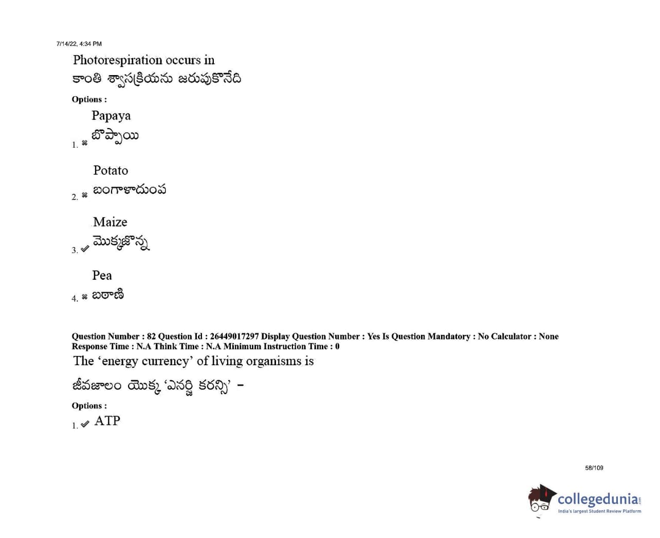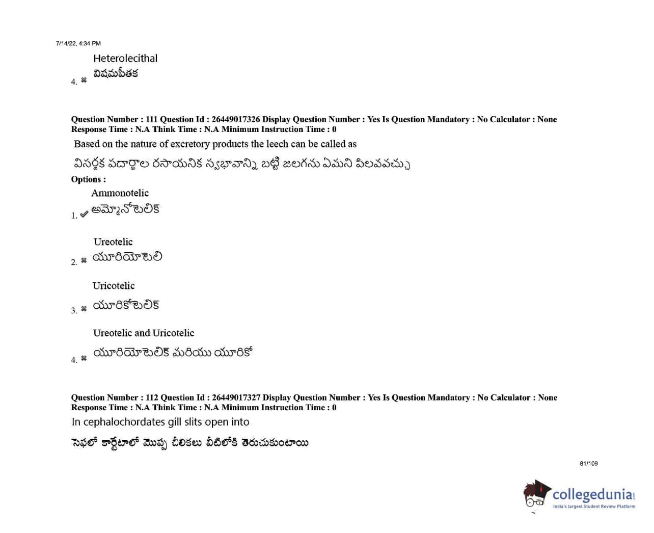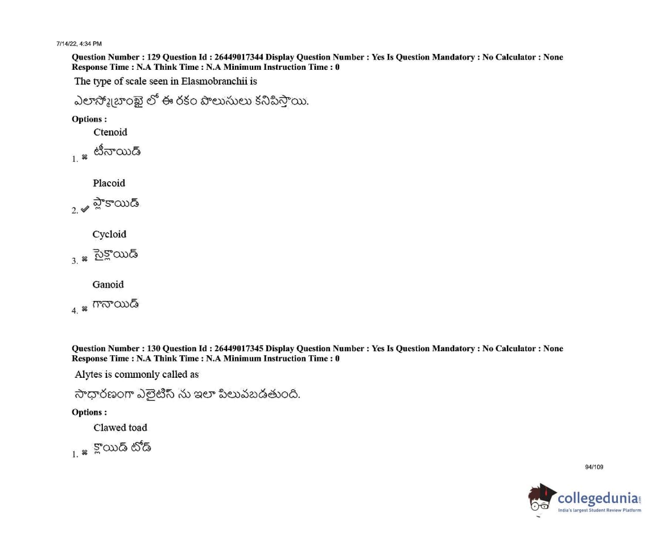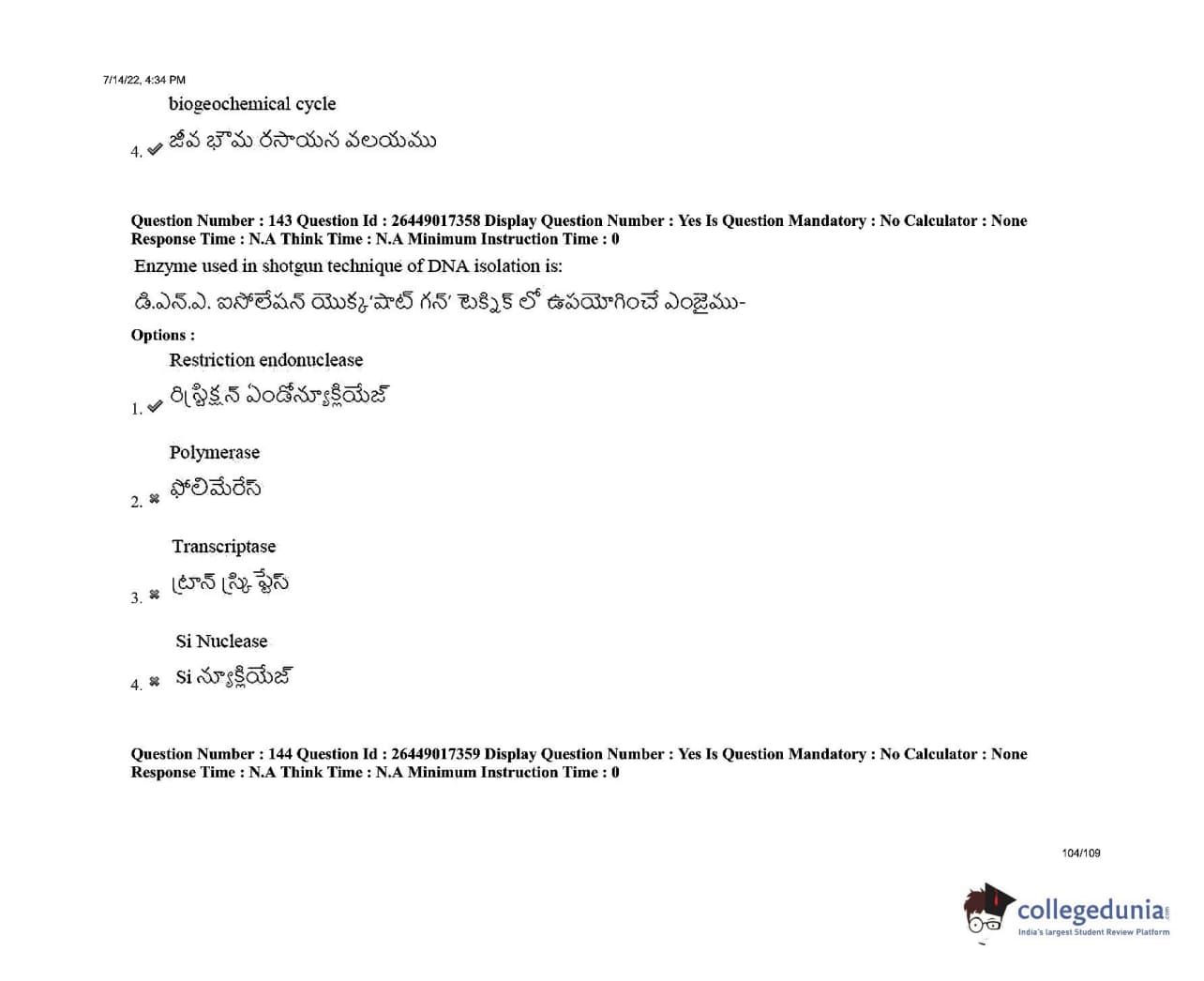 AP EDCET 2022 Biological Science Question Paper with Answer Key PDFs Shift 1