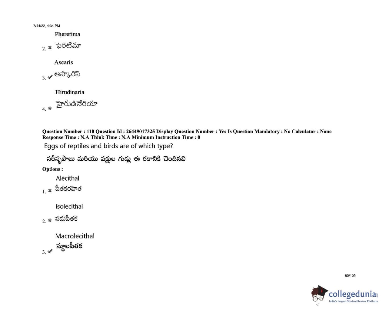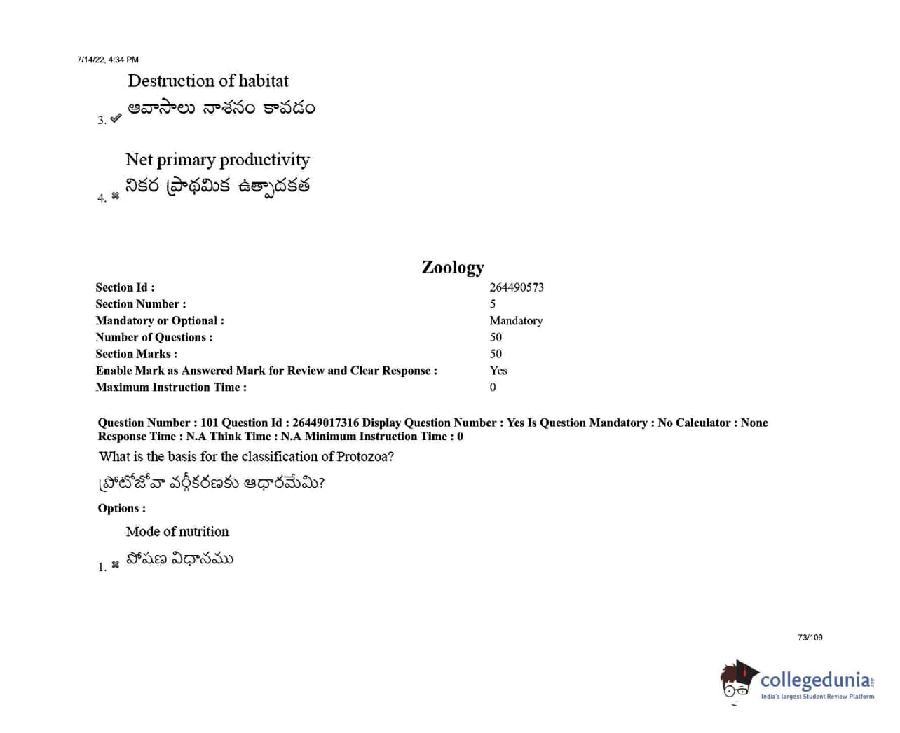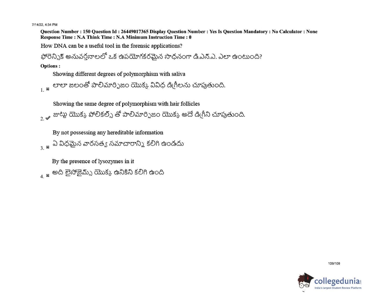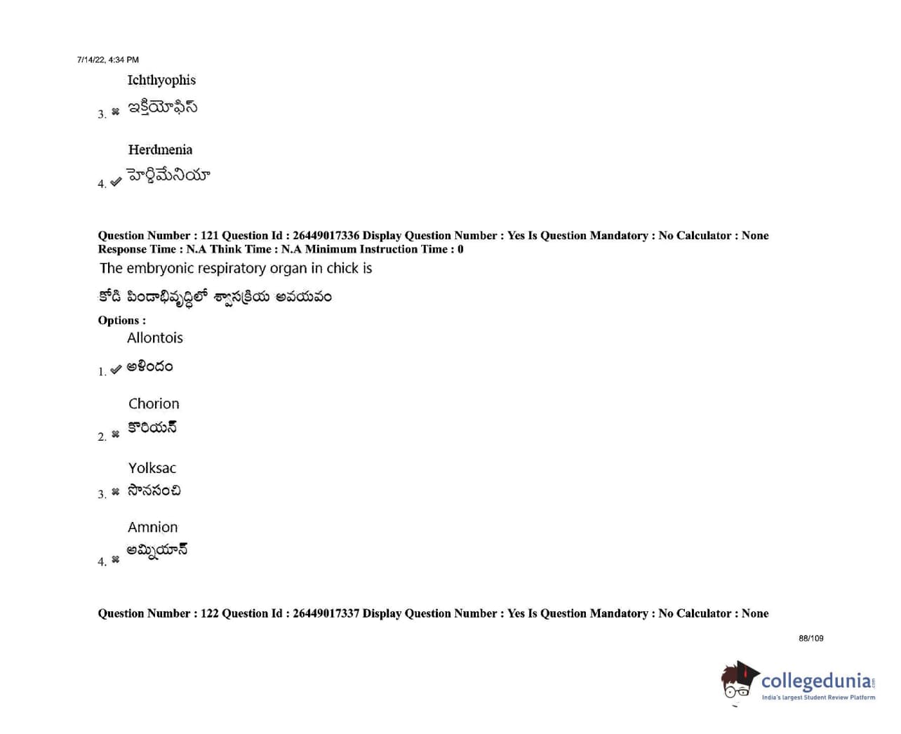 AP EDCET 2022 Biological Science Question Paper with Answer Key PDFs Shift 1