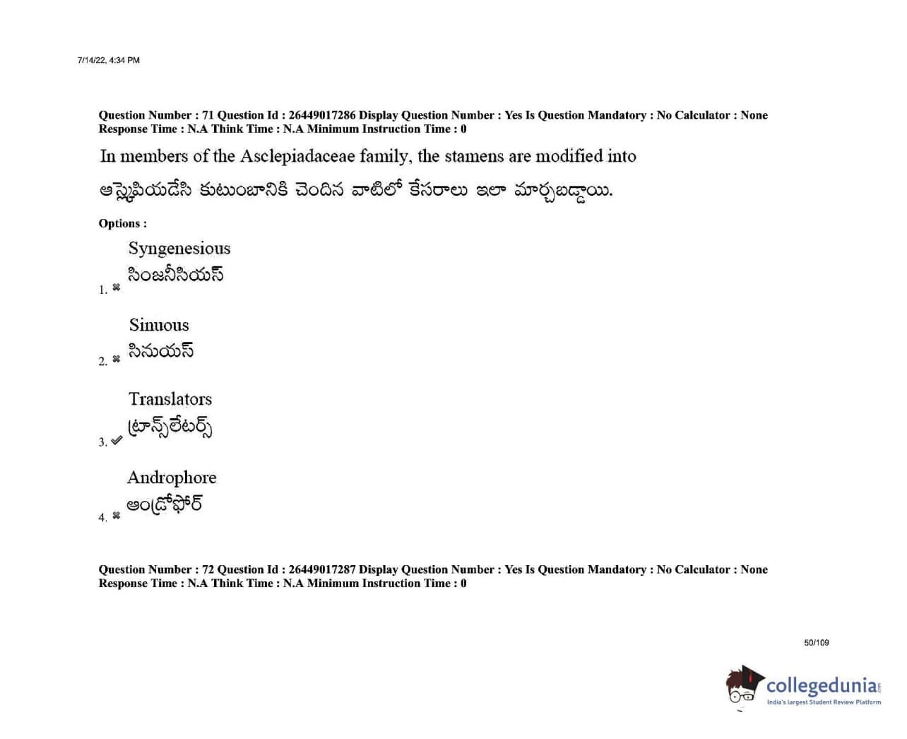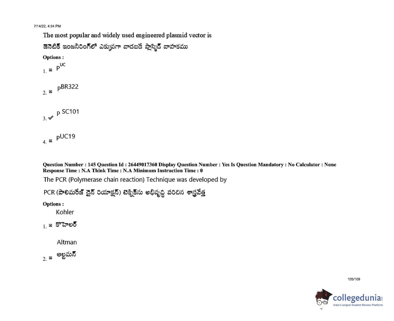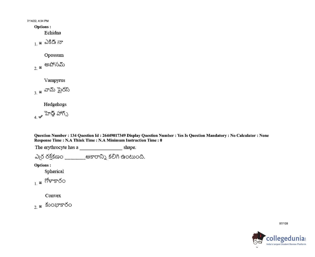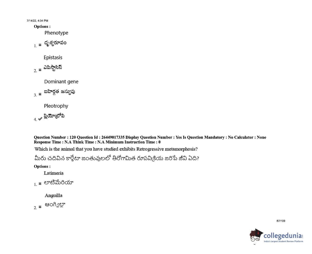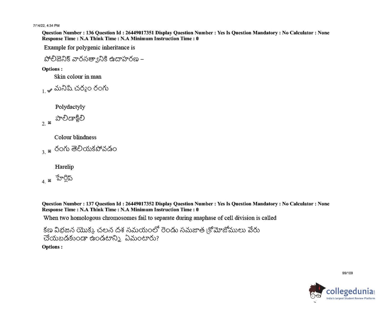 AP EDCET 2022 Biological Science Question Paper with Answer Key PDFs Shift 1