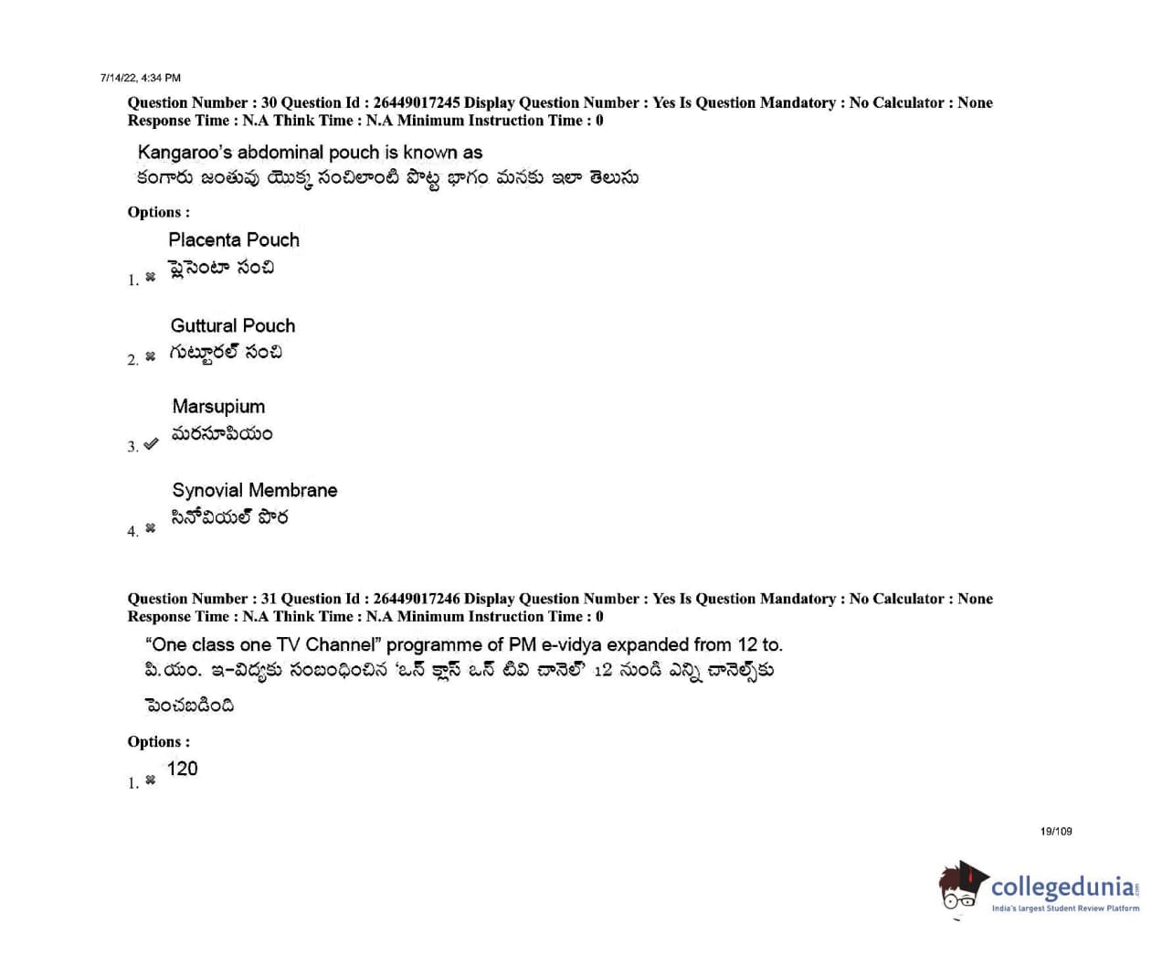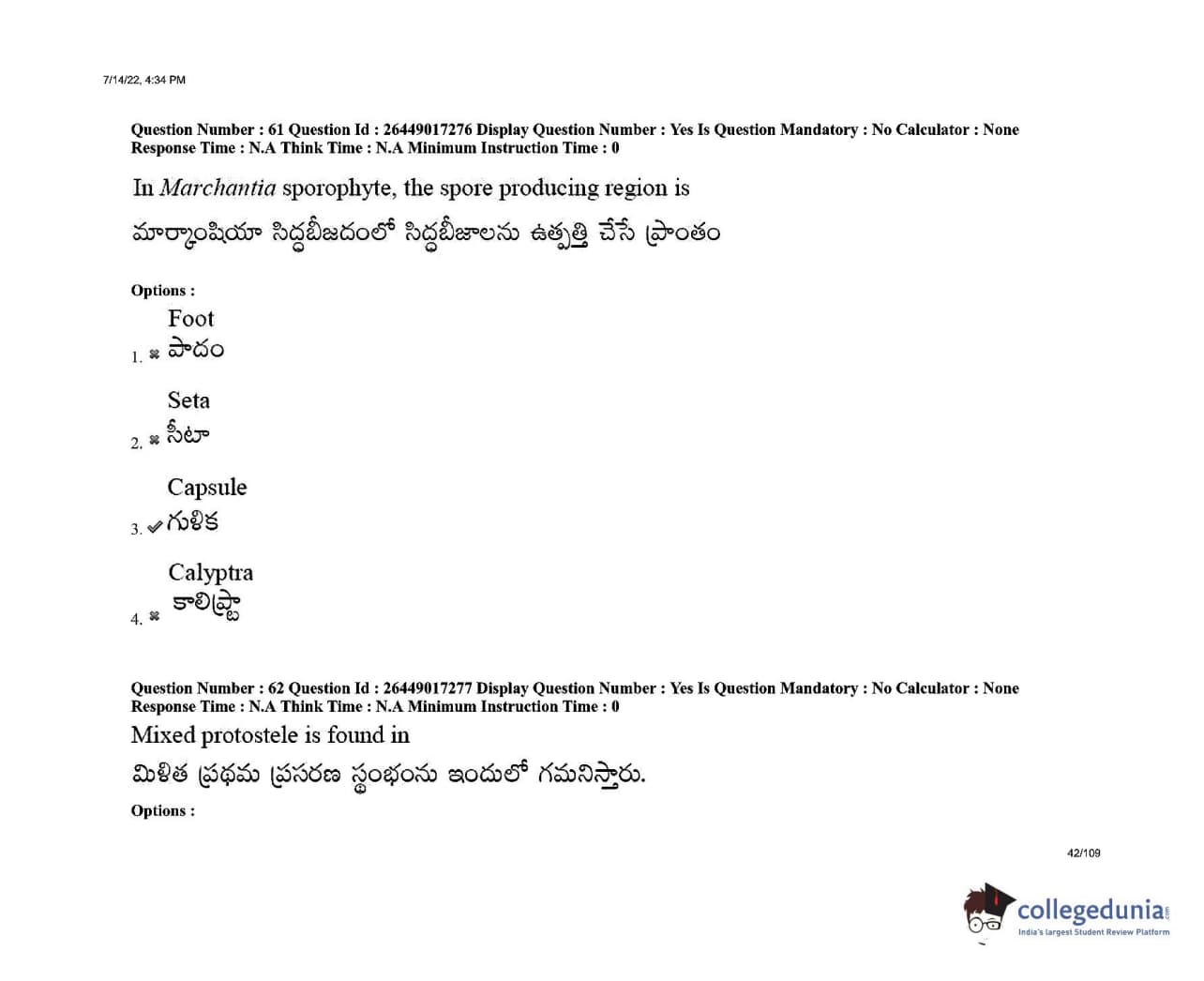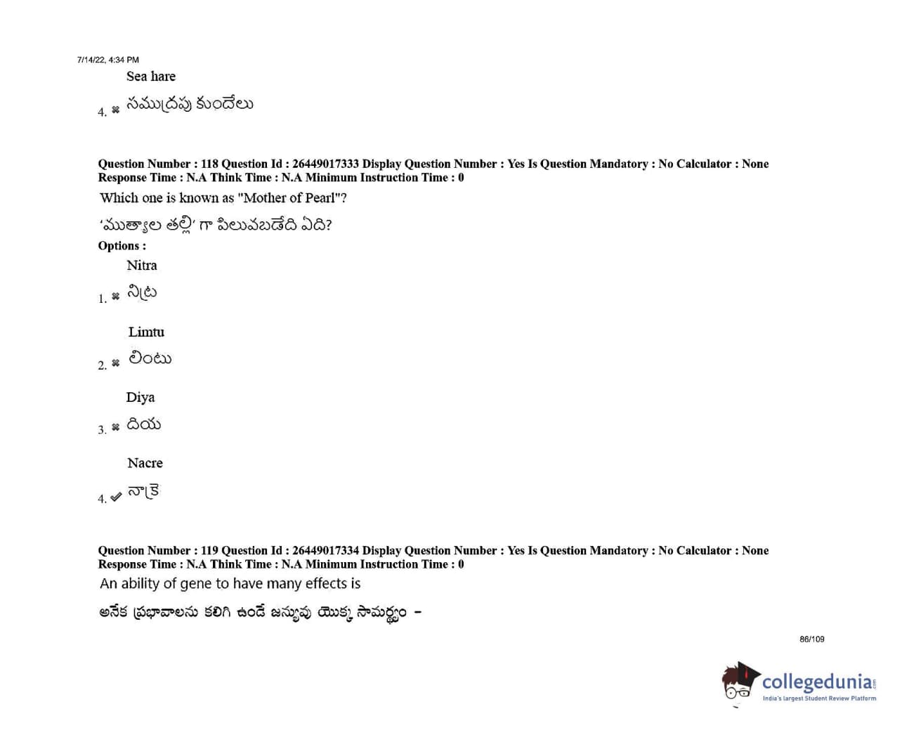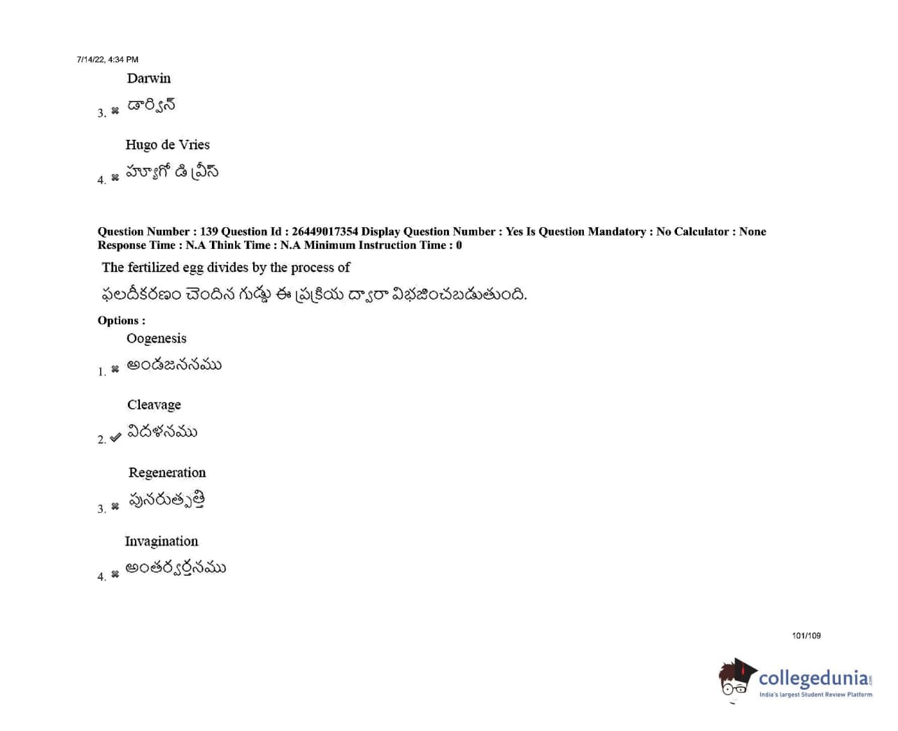 AP EDCET 2022 Biological Science Question Paper with Answer Key PDFs Shift 1