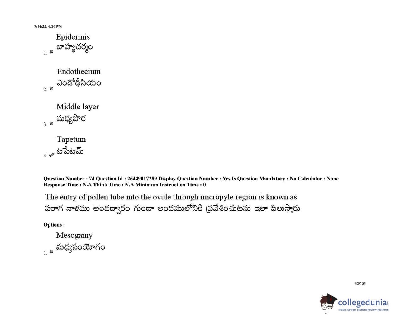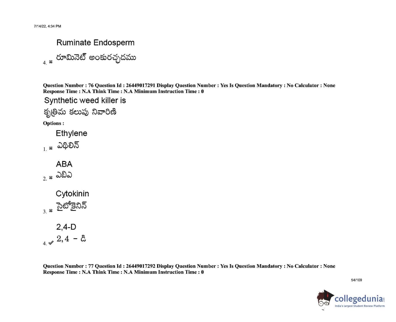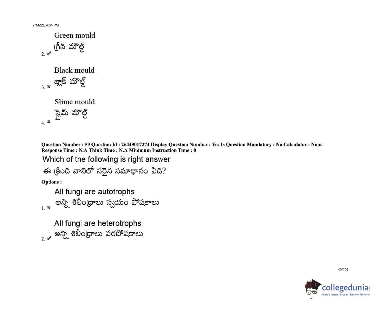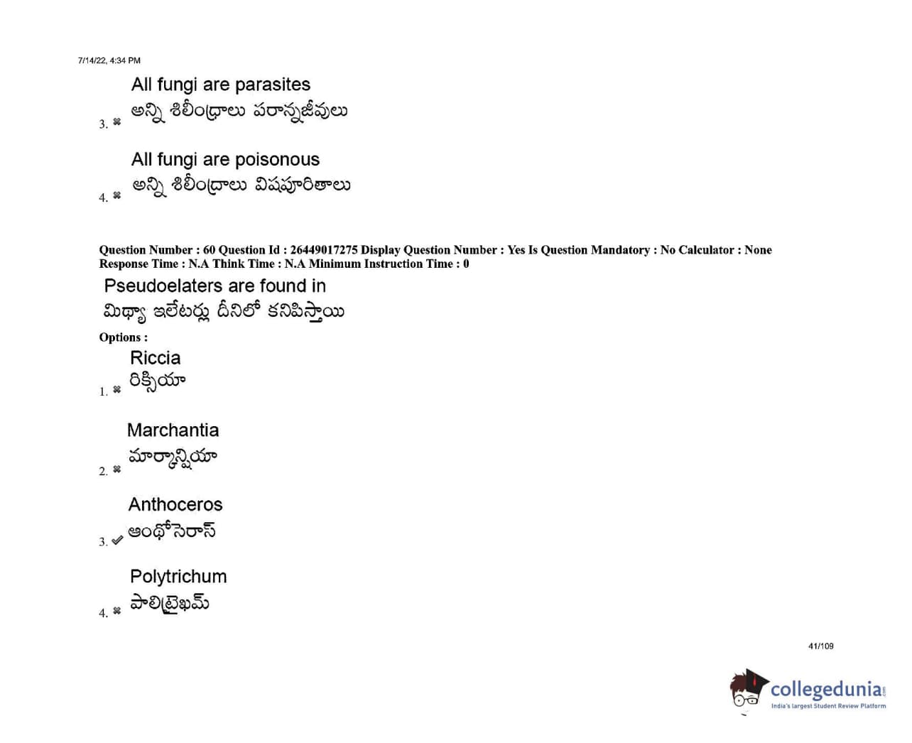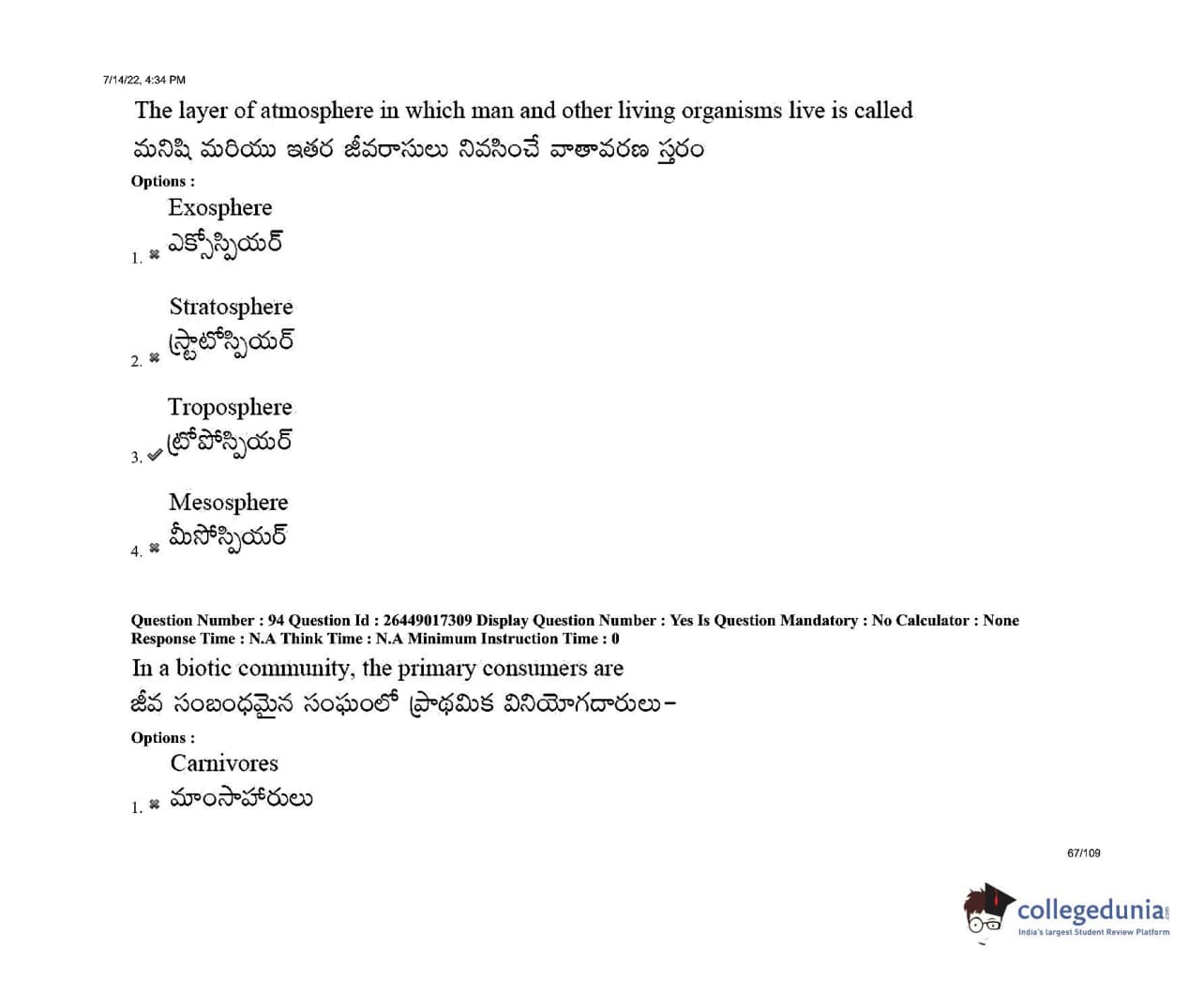 AP EDCET 2022 Biological Science Question Paper with Answer Key PDFs Shift 1