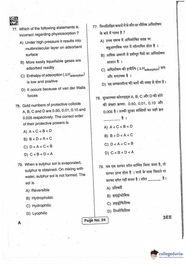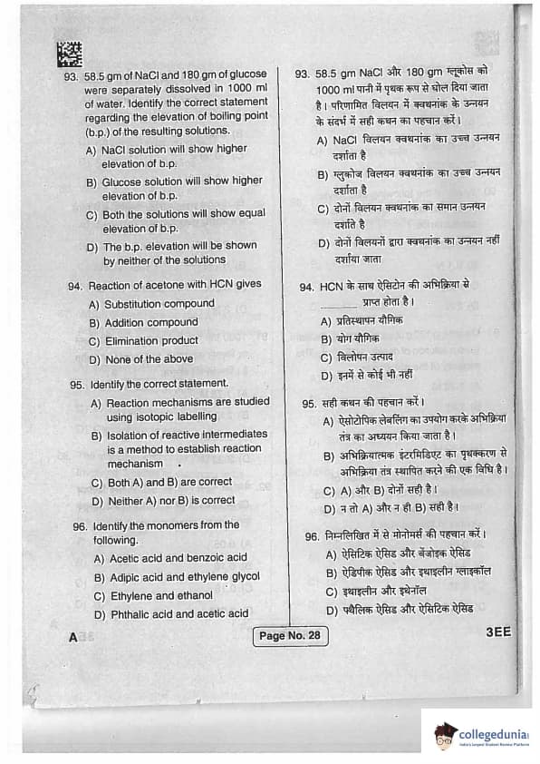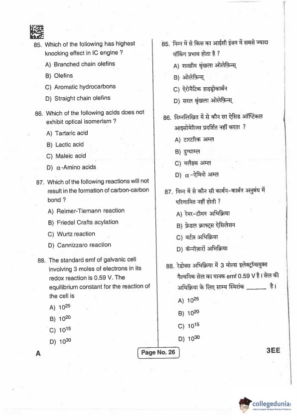 JEECE 2017 Chemistry Code A Question Paper with Answer Key PDFs
